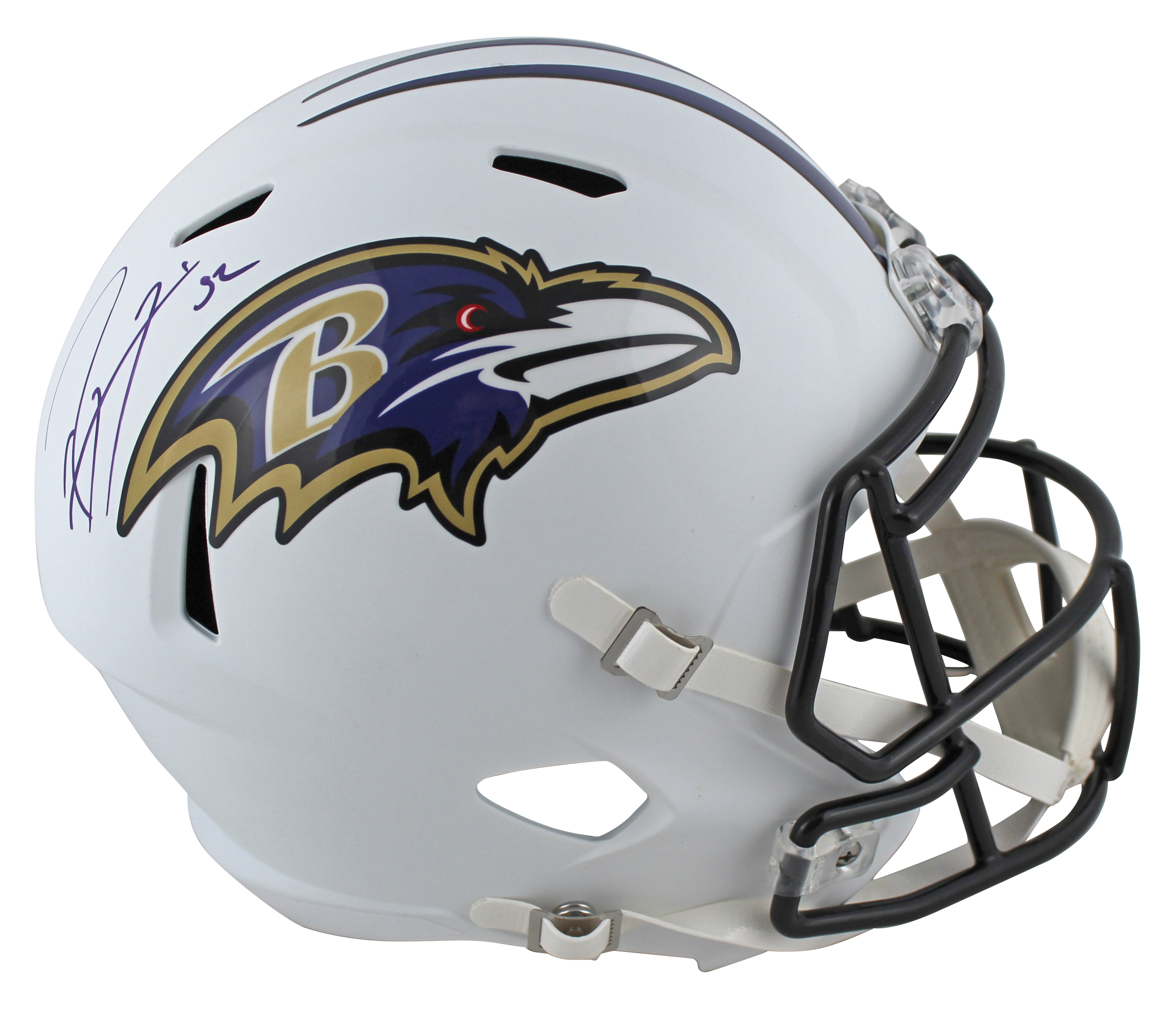 Ravens Ray Lewis Signed Flat White Full Size Speed Rep Helmet BAS Witnessed