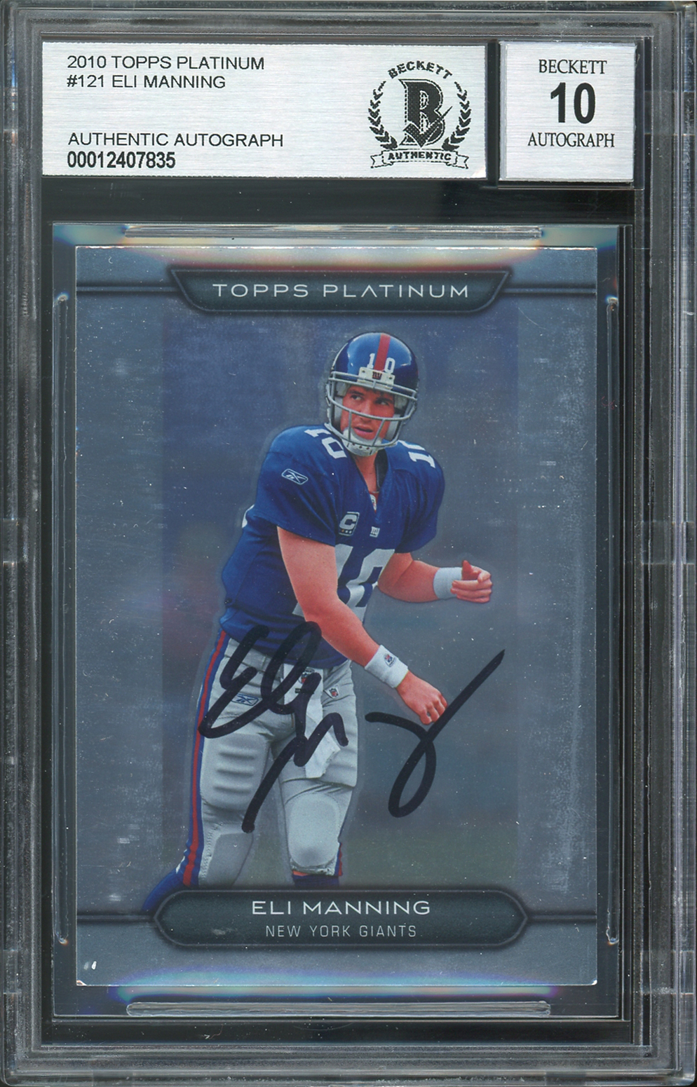 Giants Eli Manning Signed 2010 Topps Platinum #121 Card Auto Graded 10! BAS Slab