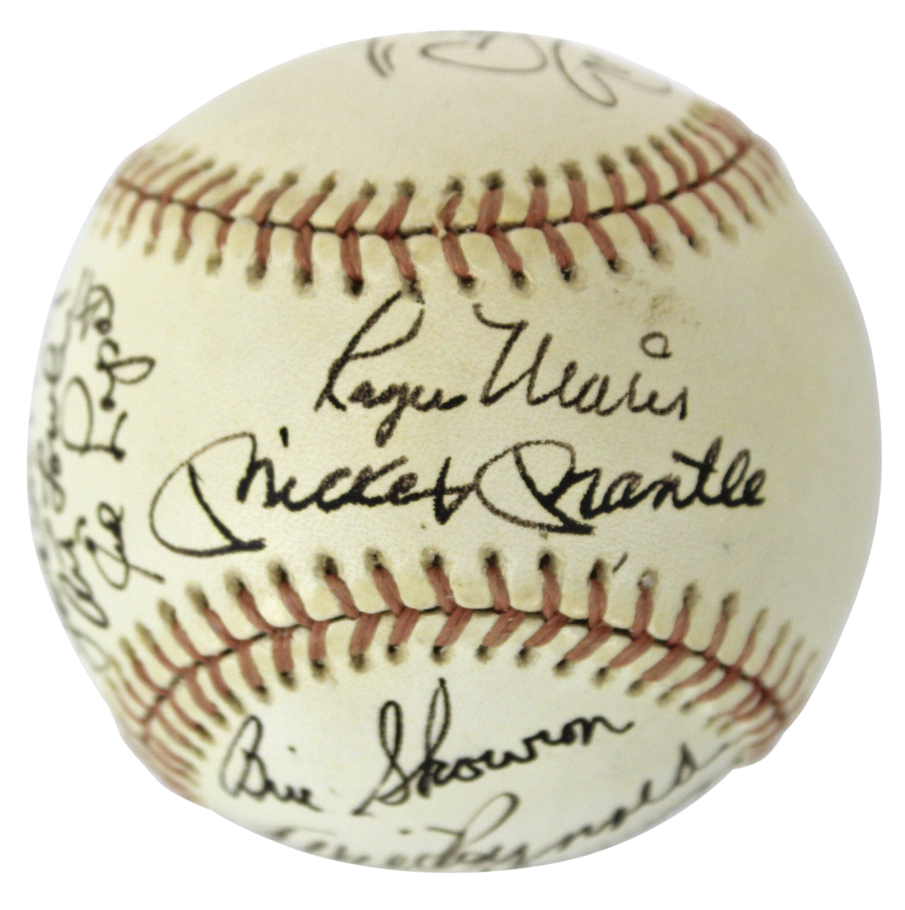 Yankees Old-Timers (12) Mantle, Rizzuto, Maris, Skowron Signed Oal Baseball JSA