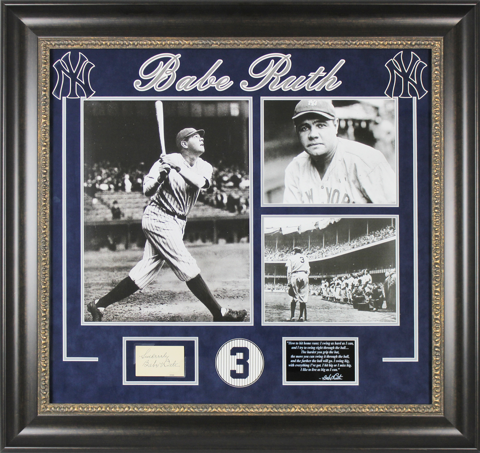 Yankees Babe Ruth Signed 2x3.5 Cut Signature Framed Display JSA #X56895