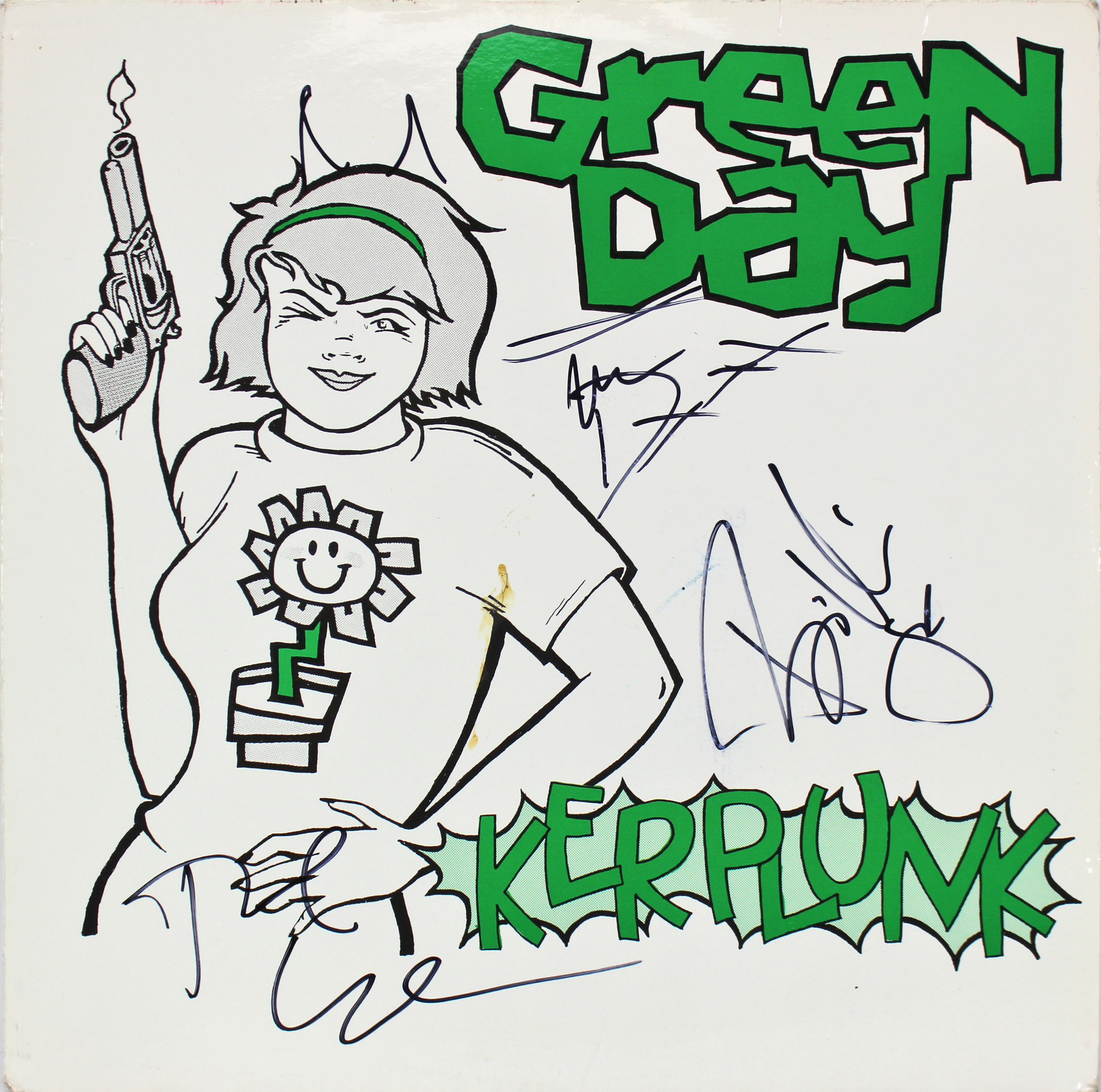 Green Day (3) Armstrong, Cool & Dirnt Signed Kerplunk Album Cover W/ Vinyl BAS