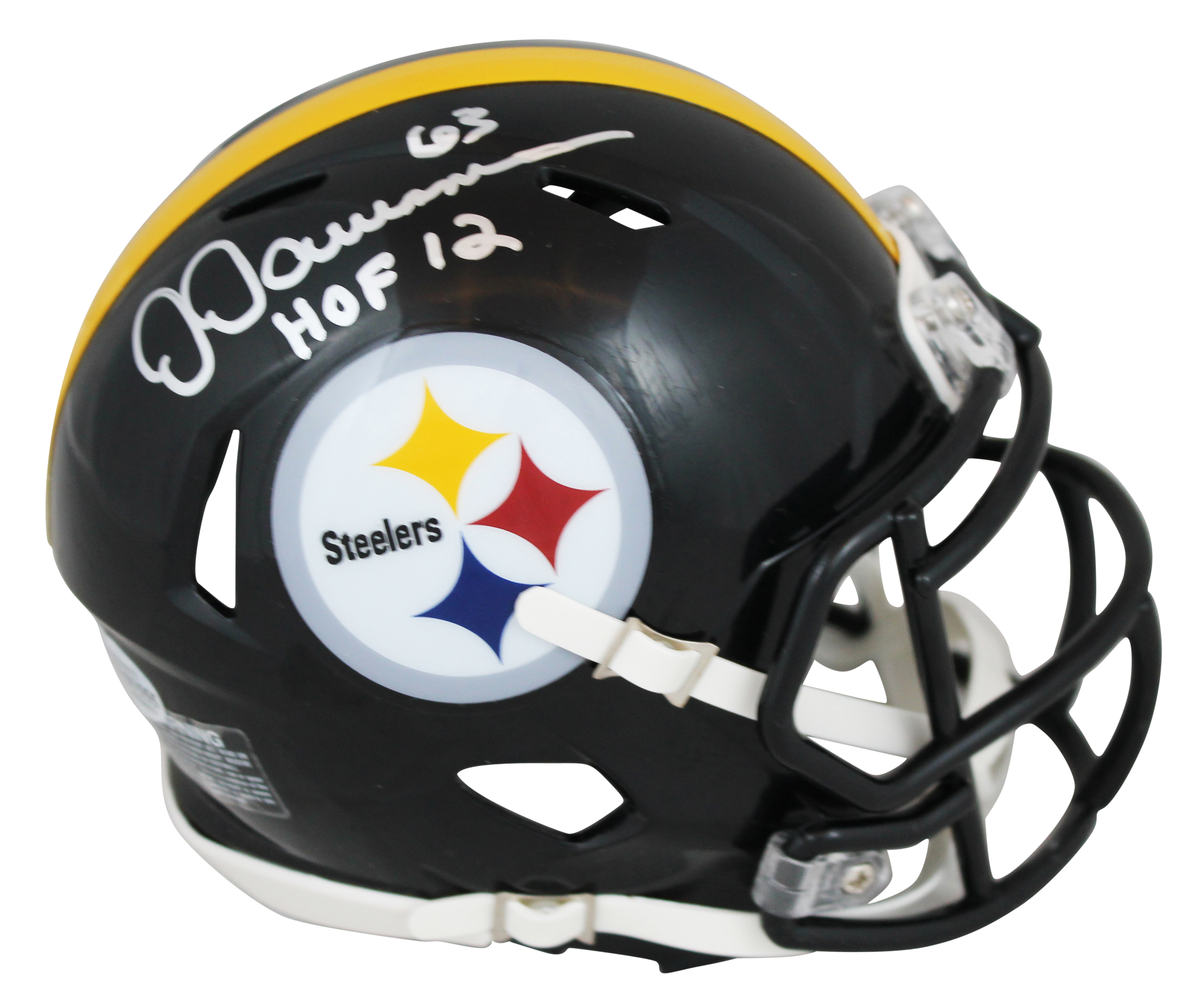 Steelers Dermontti Dawson "HOF 12" Authentic Signed Speed Mini Helmet BAS Wit