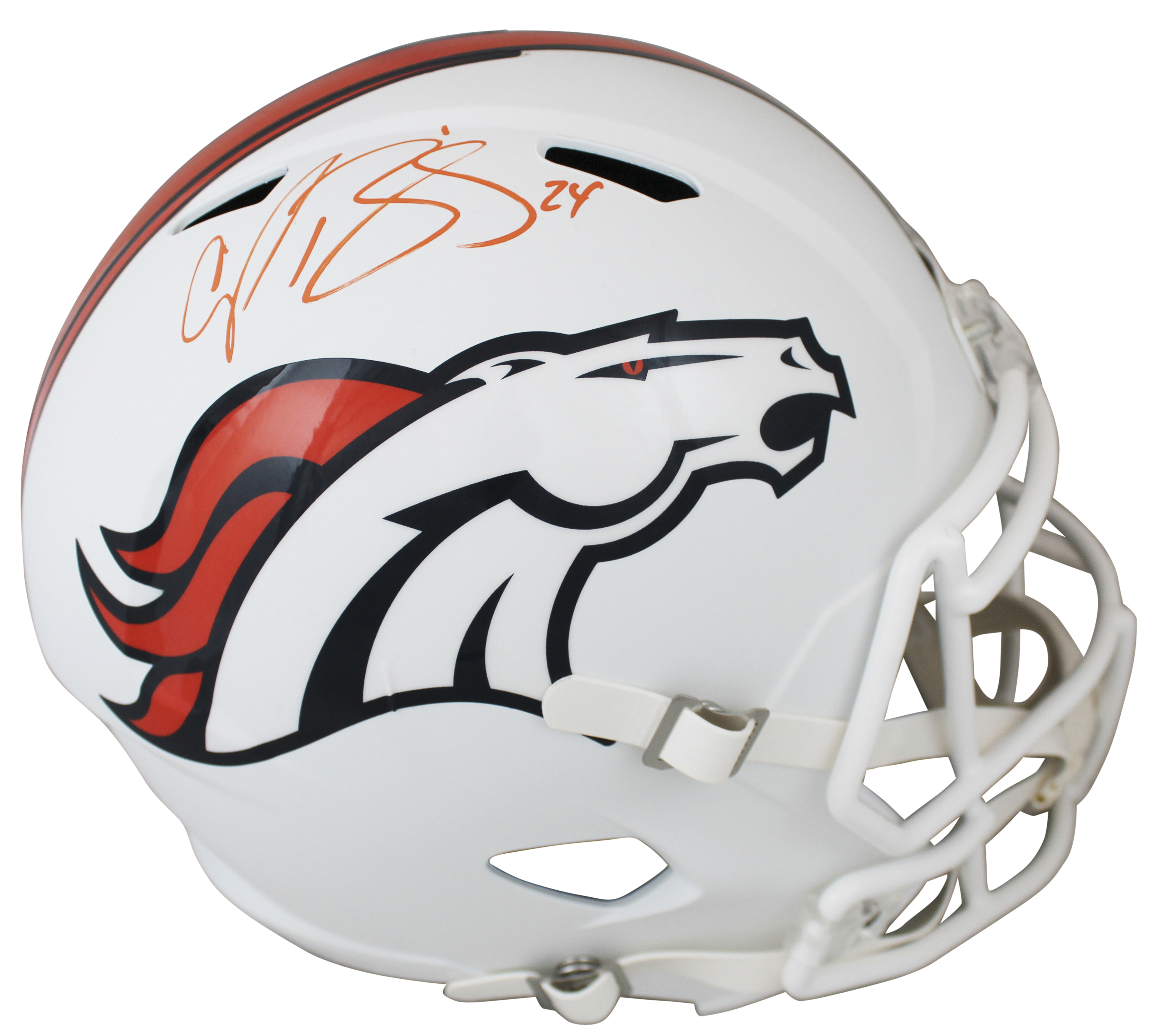 Broncos Champ Bailey Signed Flat White Full Size Speed Rep Helmet BAS Witnessed