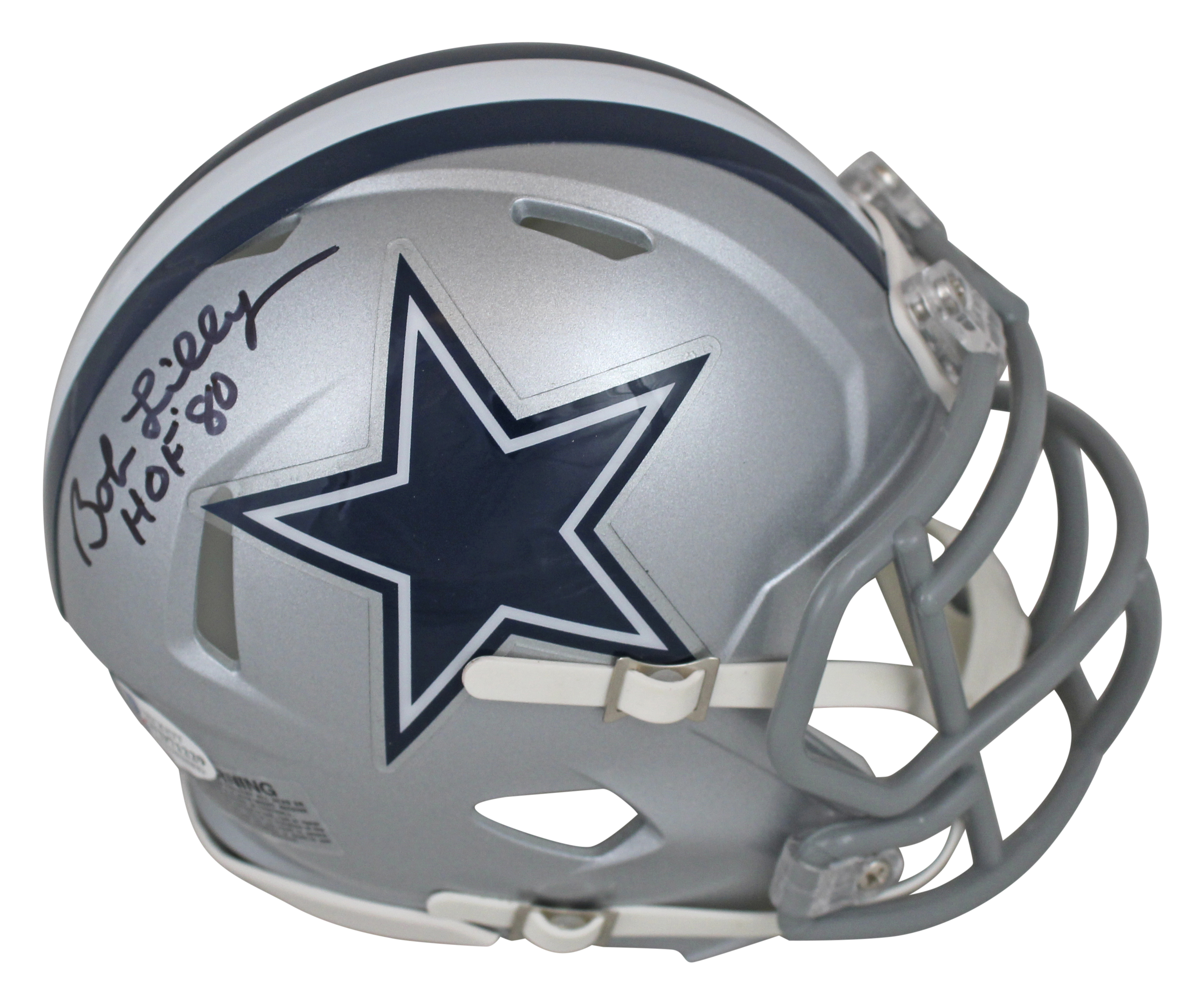 Cowboys Bob Lilly "HOF 80" Authentic Signed Speed Mini Helmet BAS Witnessed
