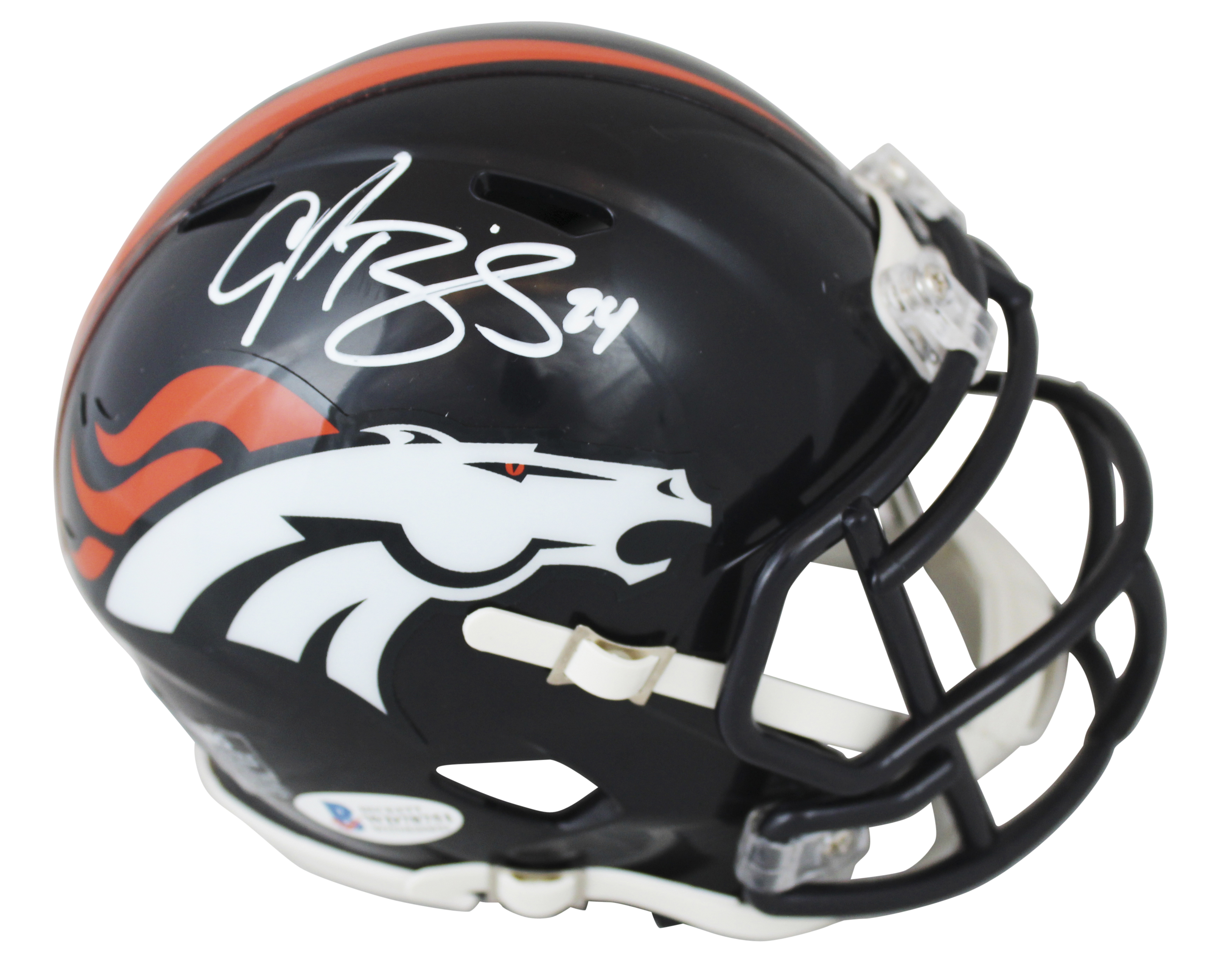 Broncos Champ Bailey Signed Eclipse Full Size Speed Rep Helmet BAS Witnessed