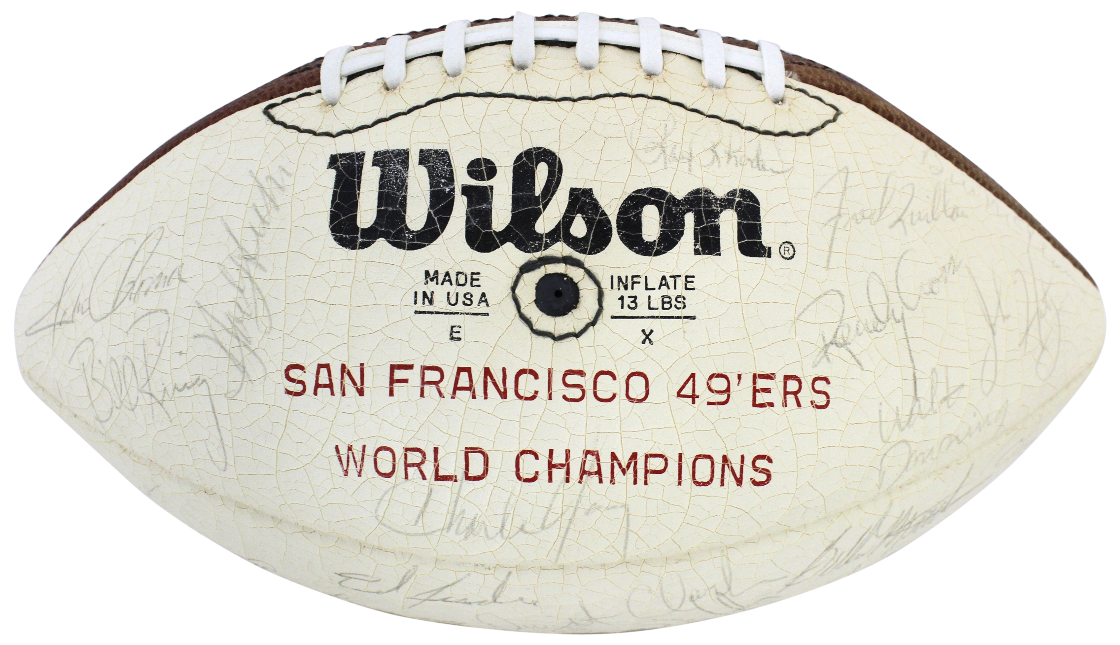 49ers Super Bowl XVI (34) Walsh, Clark Signed White Panel Football BAS #A57182