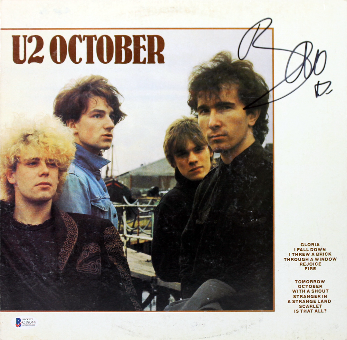 Bono U2 Signed October Album Cover W/ Vinyl Autographed BAS #C19044