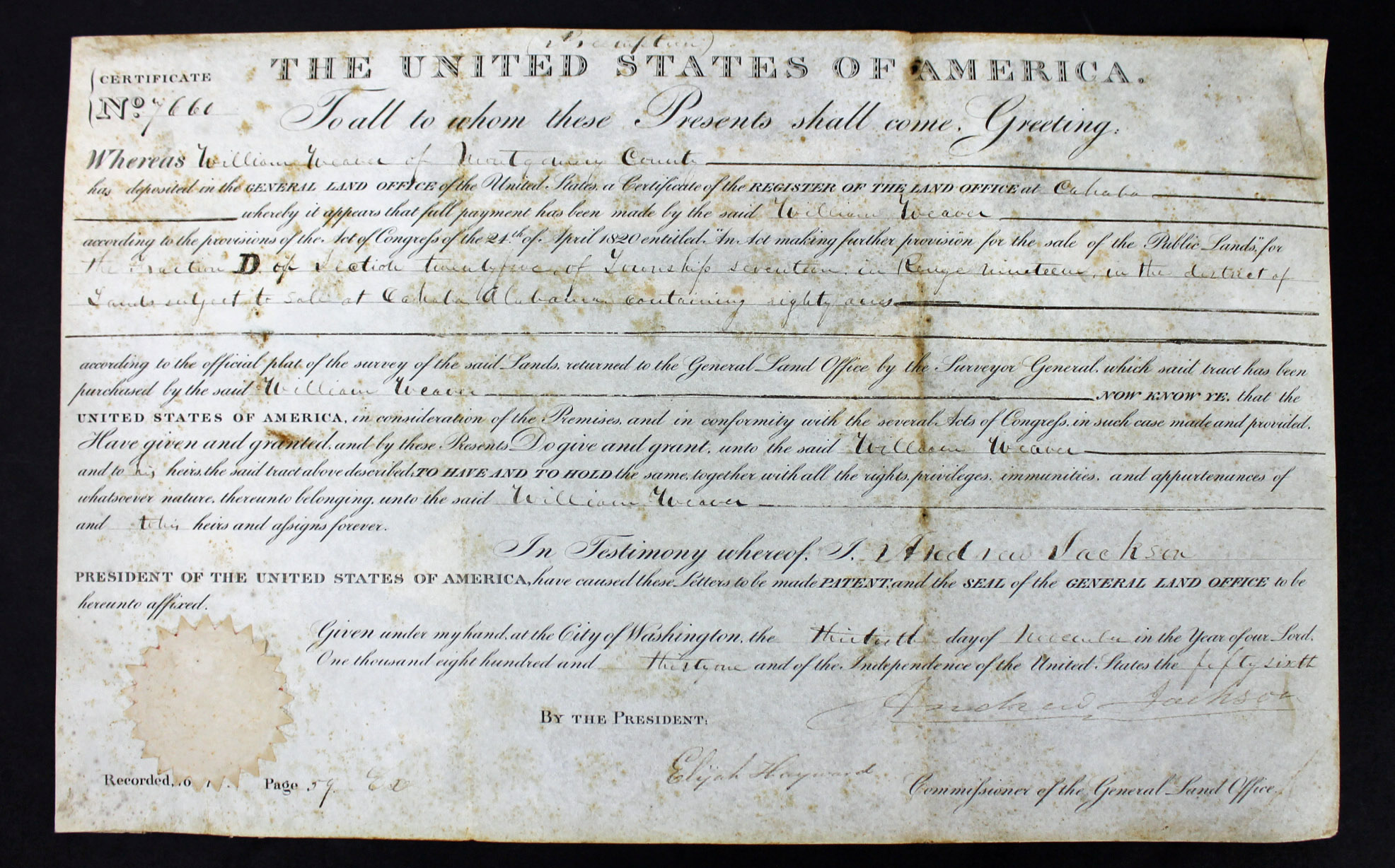 Andrew Jackson Authentic Signed 10x16 Land Grant Nov 30 1831 PSA/DNA #AB06844