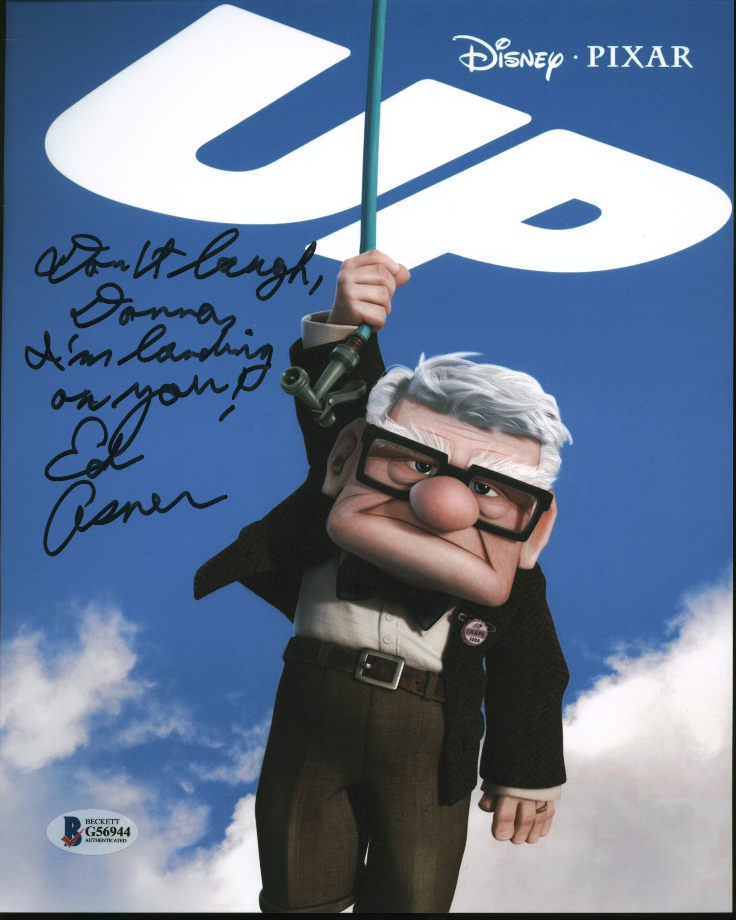 Ed Asner UP "Don't Laugh I'm Landing On You!" Signed 8x10 Photo BAS #G56944