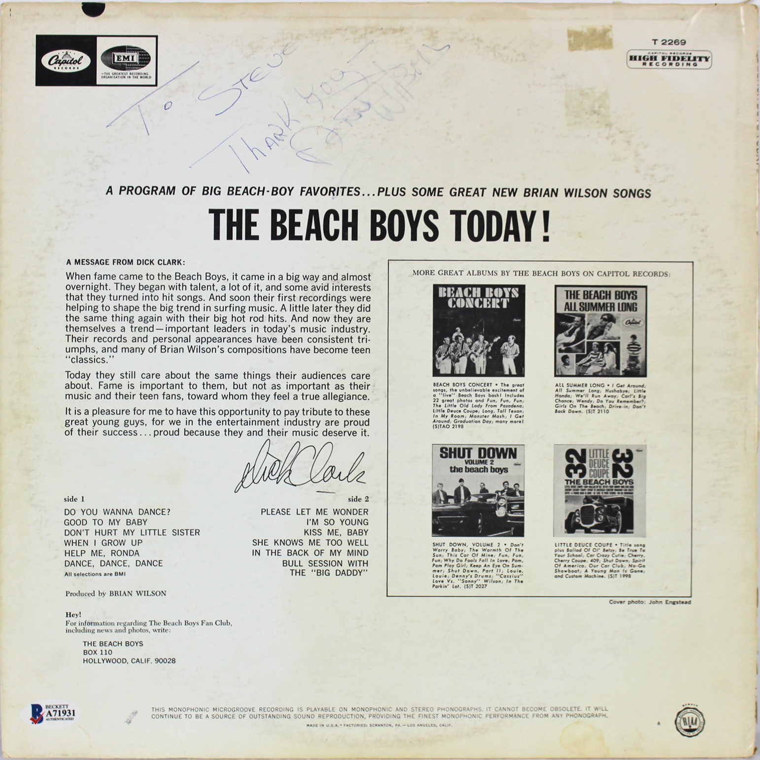 Dennis Wilson Signed The Beach Boys Today! Album Cover W/ Vinyl BAS #A71931