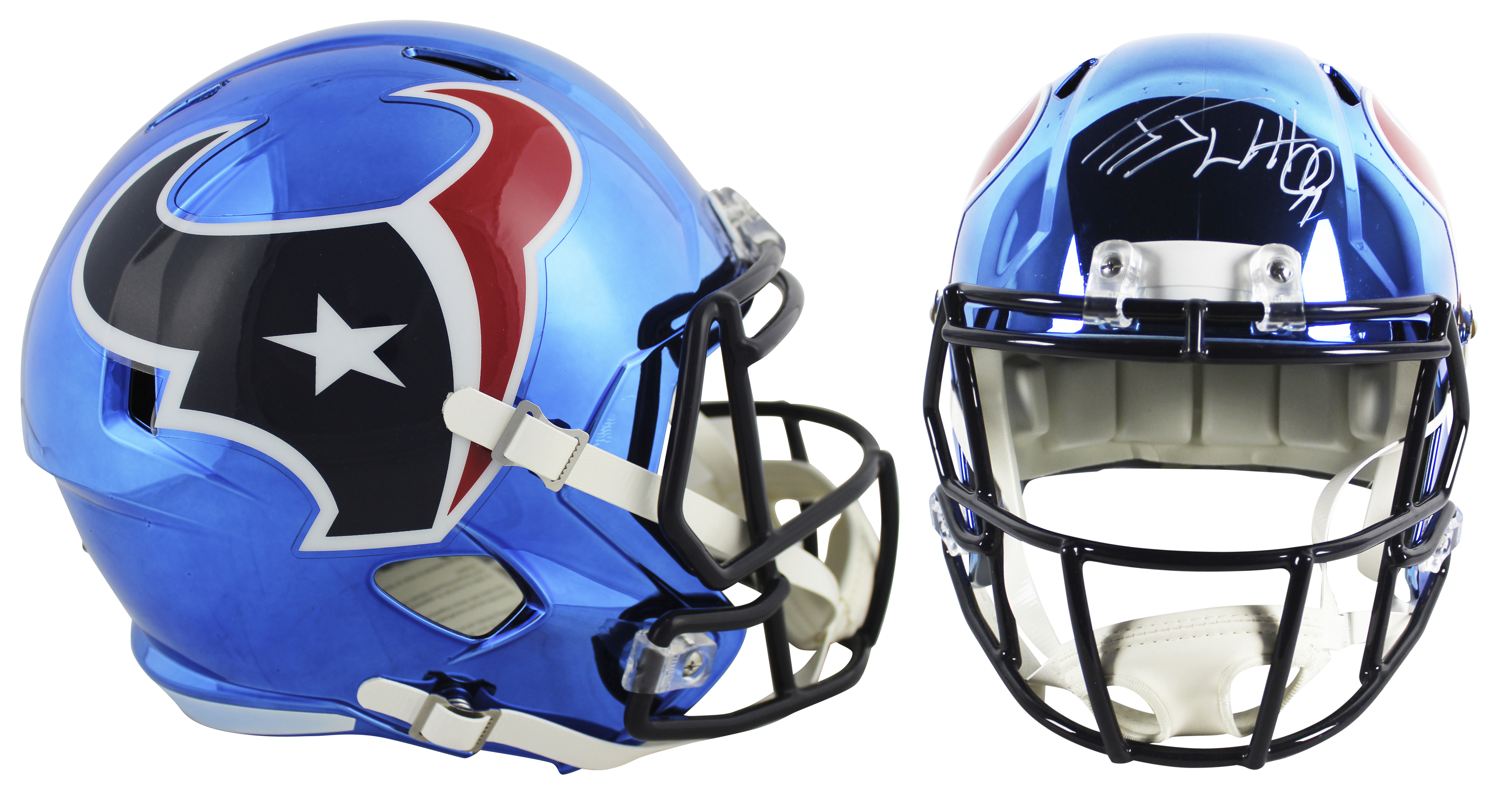 Texans J.J. Watt Authentic Signed Chrome Full Size Speed Rep Helmet JSA Witness