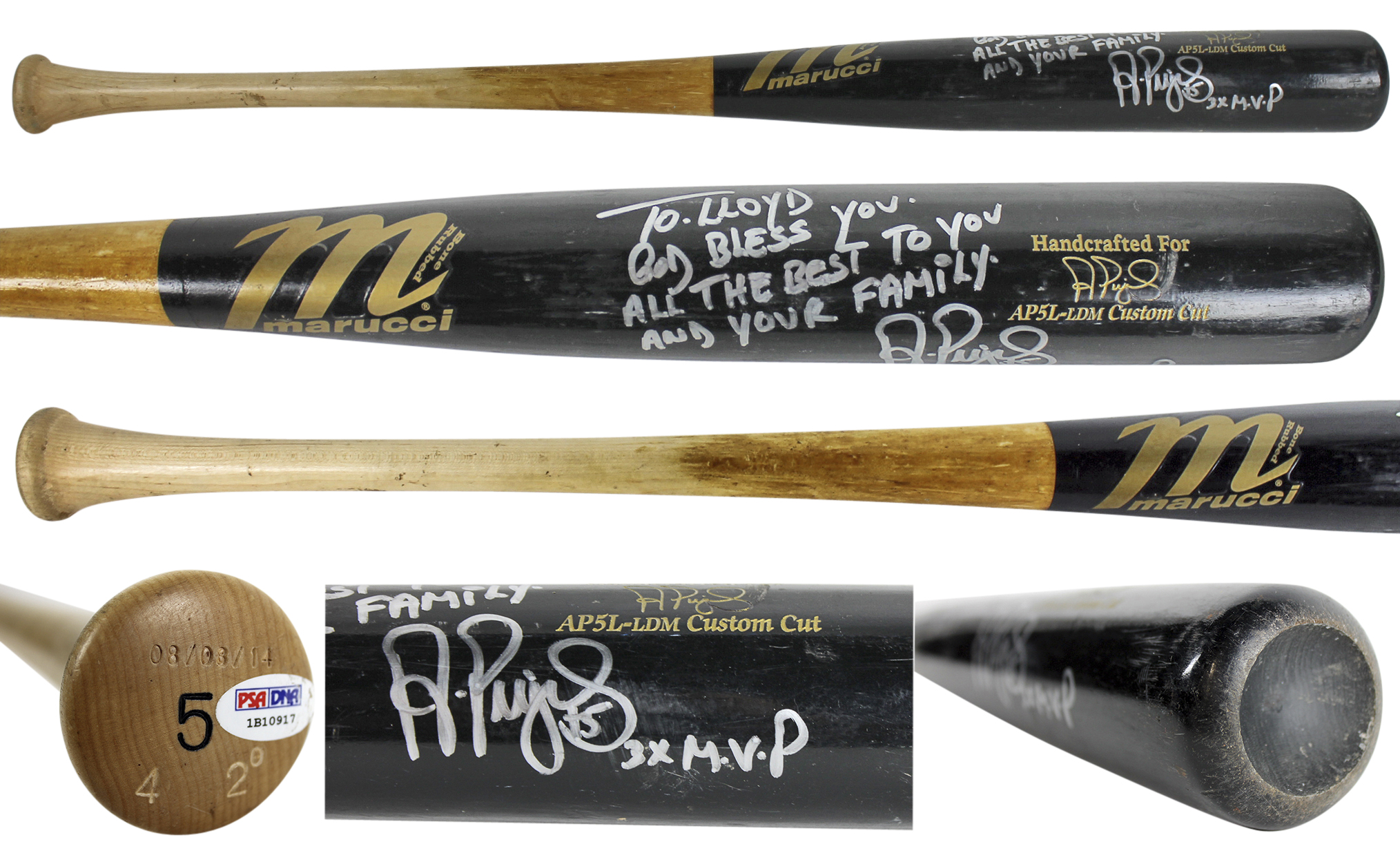 Angels Albert Pujols "3x MVP" Signed Graded 10 Game Used Marucci Bat PSA & BAS