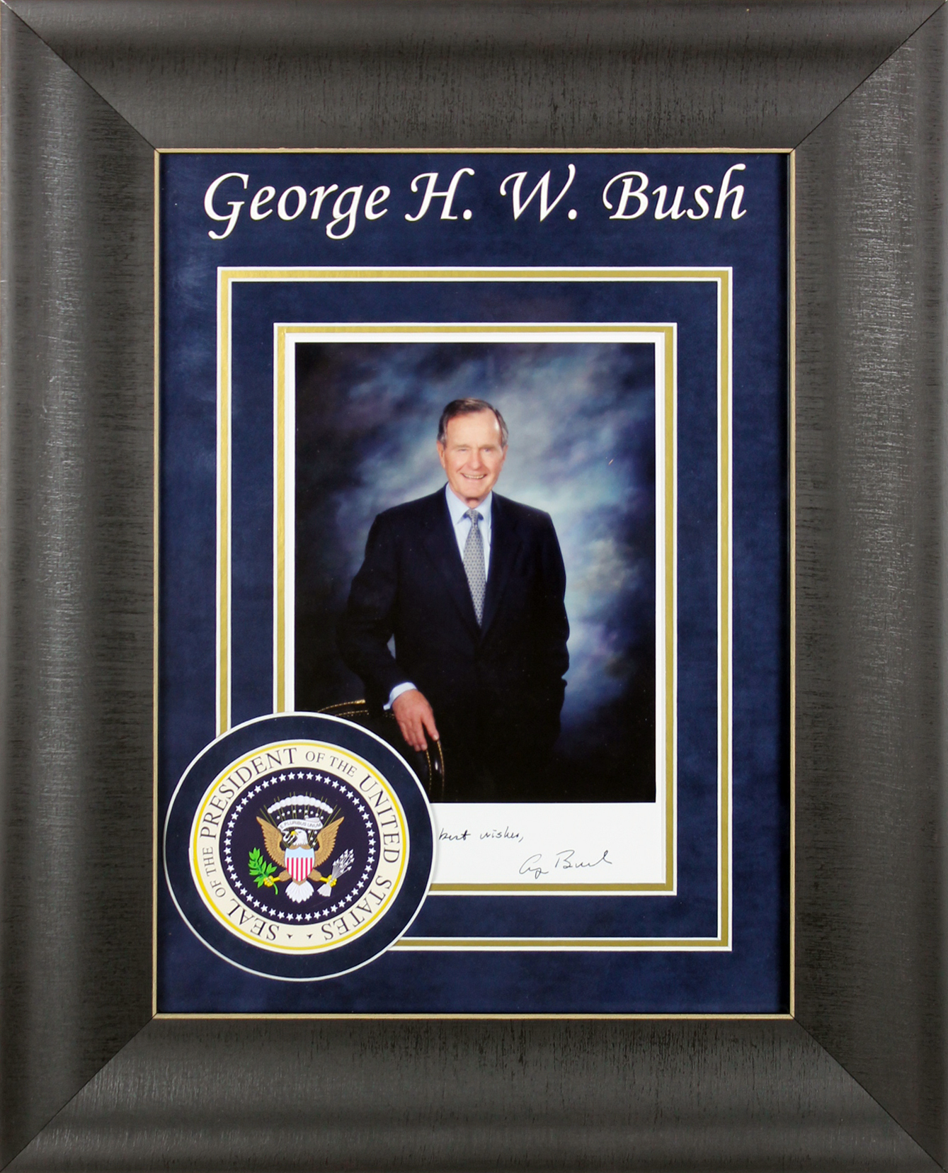 George H.W. Bush "Best Wishes" Authentic Signed & Framed 7x9.5 Photo BAS #A03164
