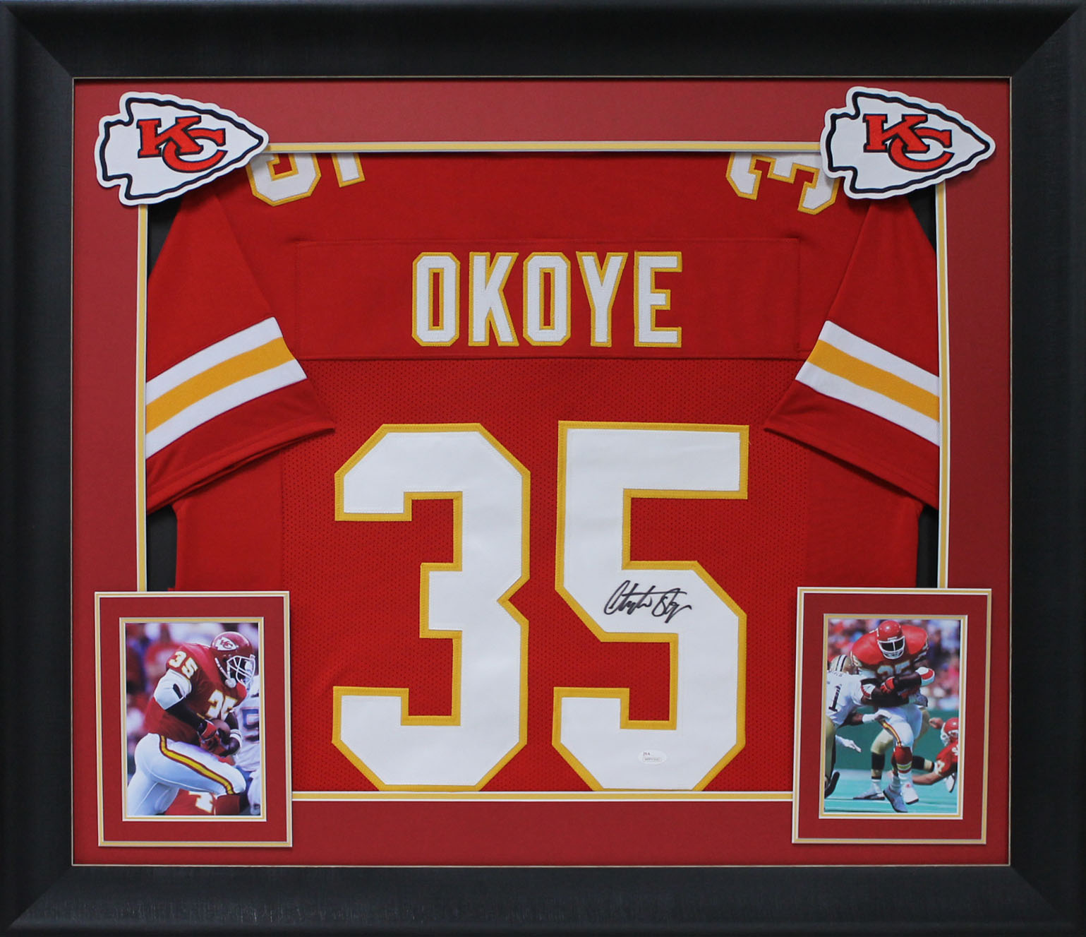 Christian Okoye Authentic Signed Red Pro Style Framed Jersey JSA Witness