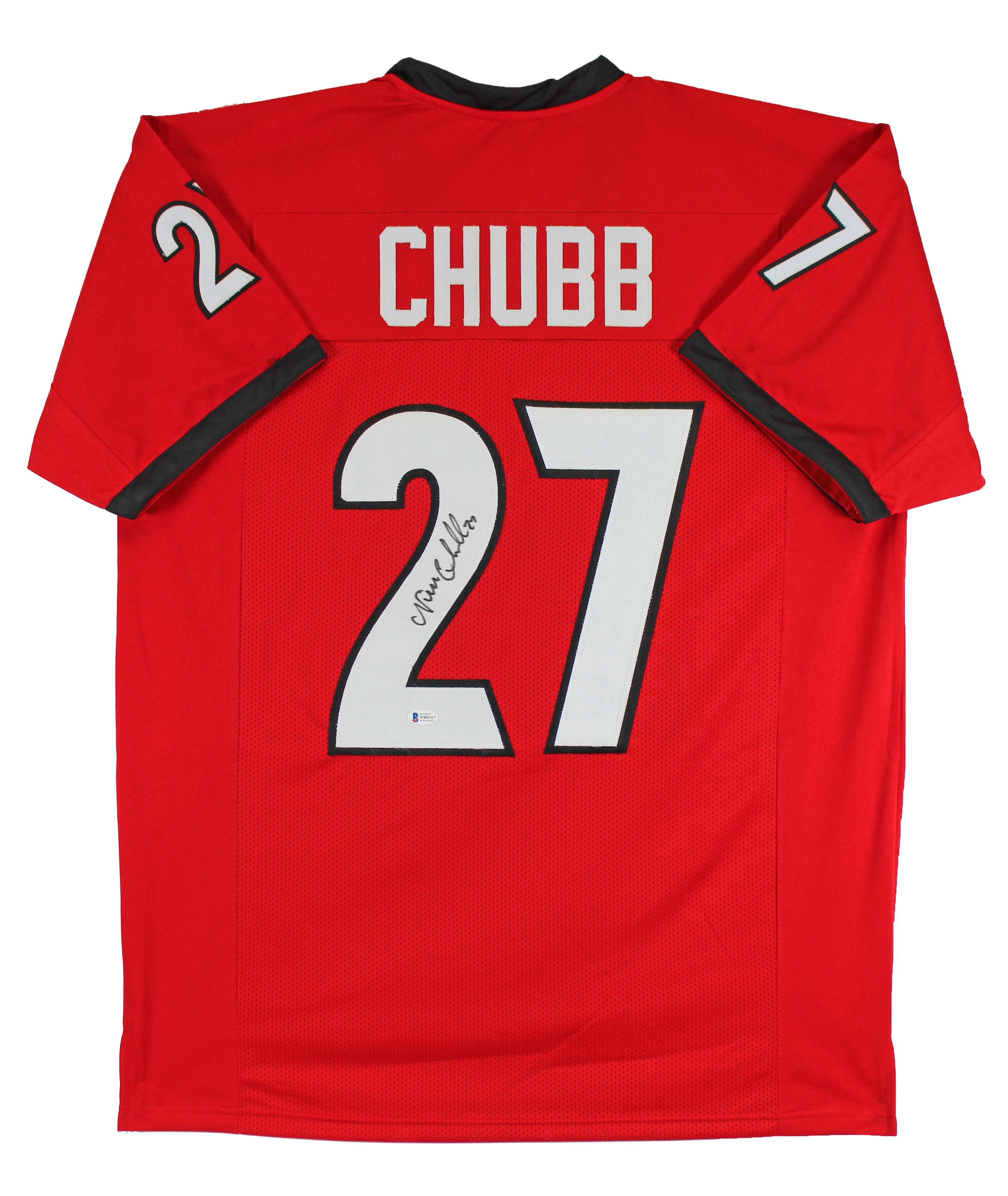 Nick Chubb Authentic Signed Red Pro Style Jersey Autographed BAS Witnessed