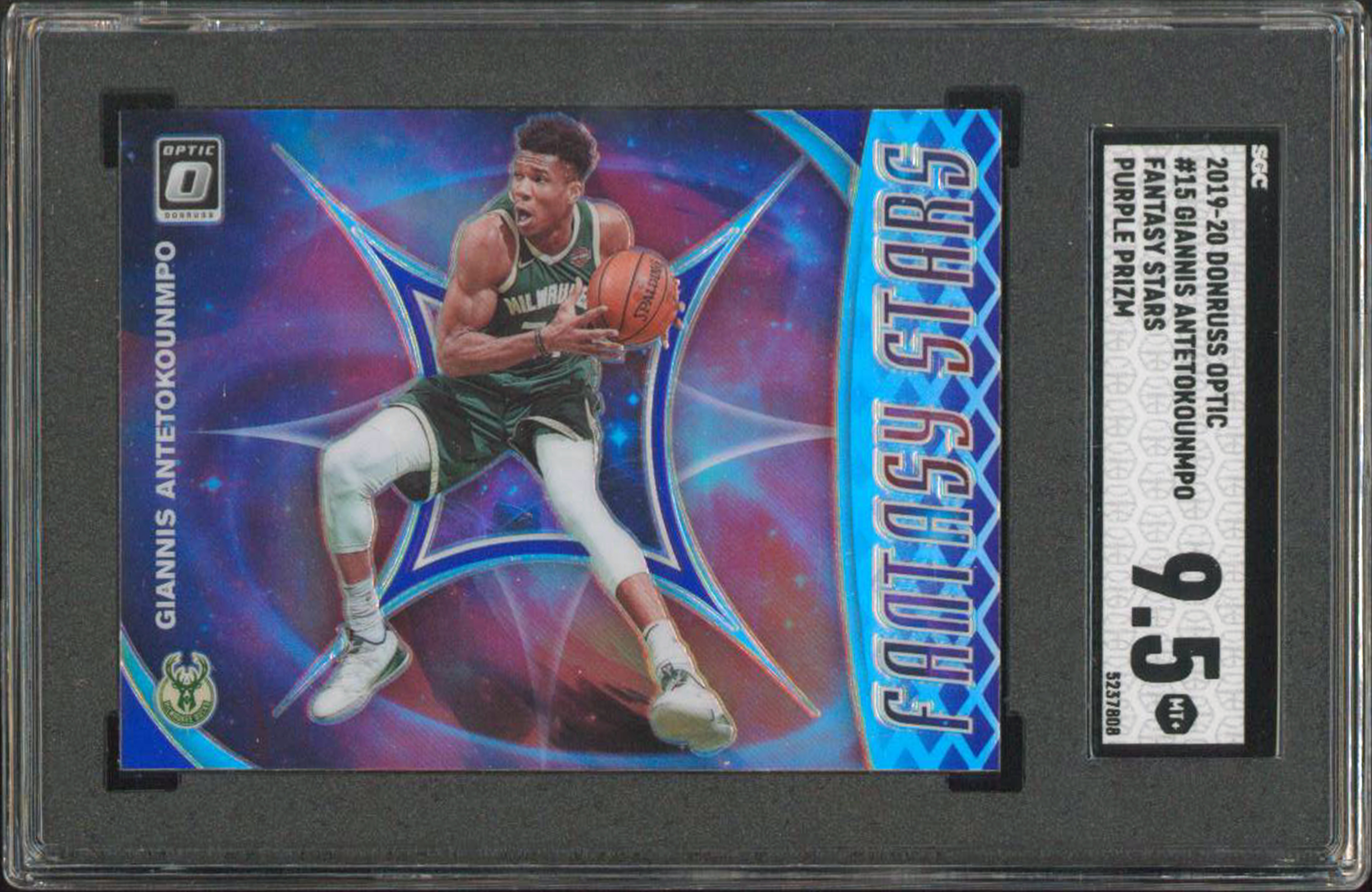 Giannis Antetokounmpo 2019 Donruss Optic #15 Fantasy Stars Purple Prizm SGC 9.5