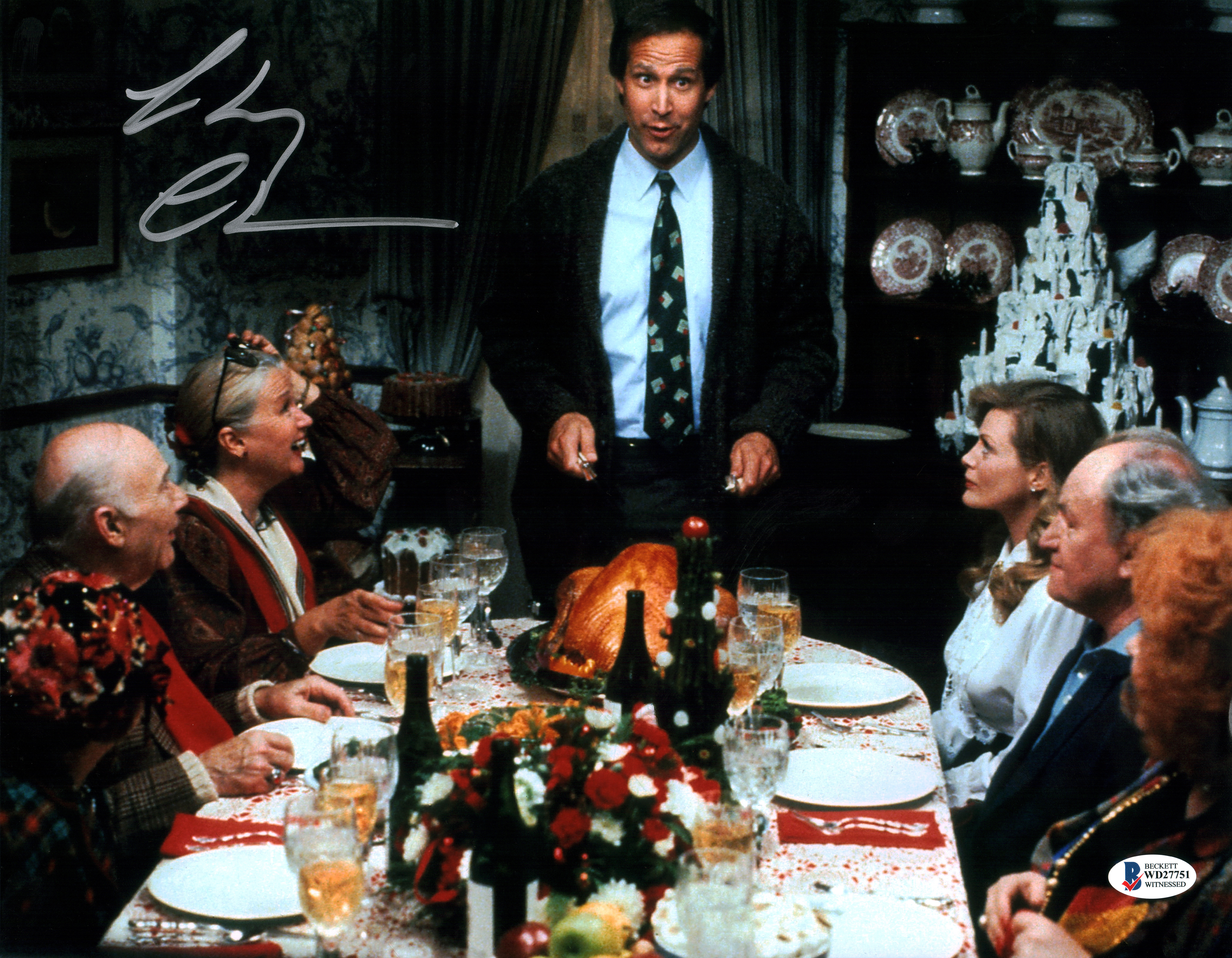 Chevy Chase Christmas Vacation Signed 11x14 Turkey Dinner Photo BAS Witnessed 26