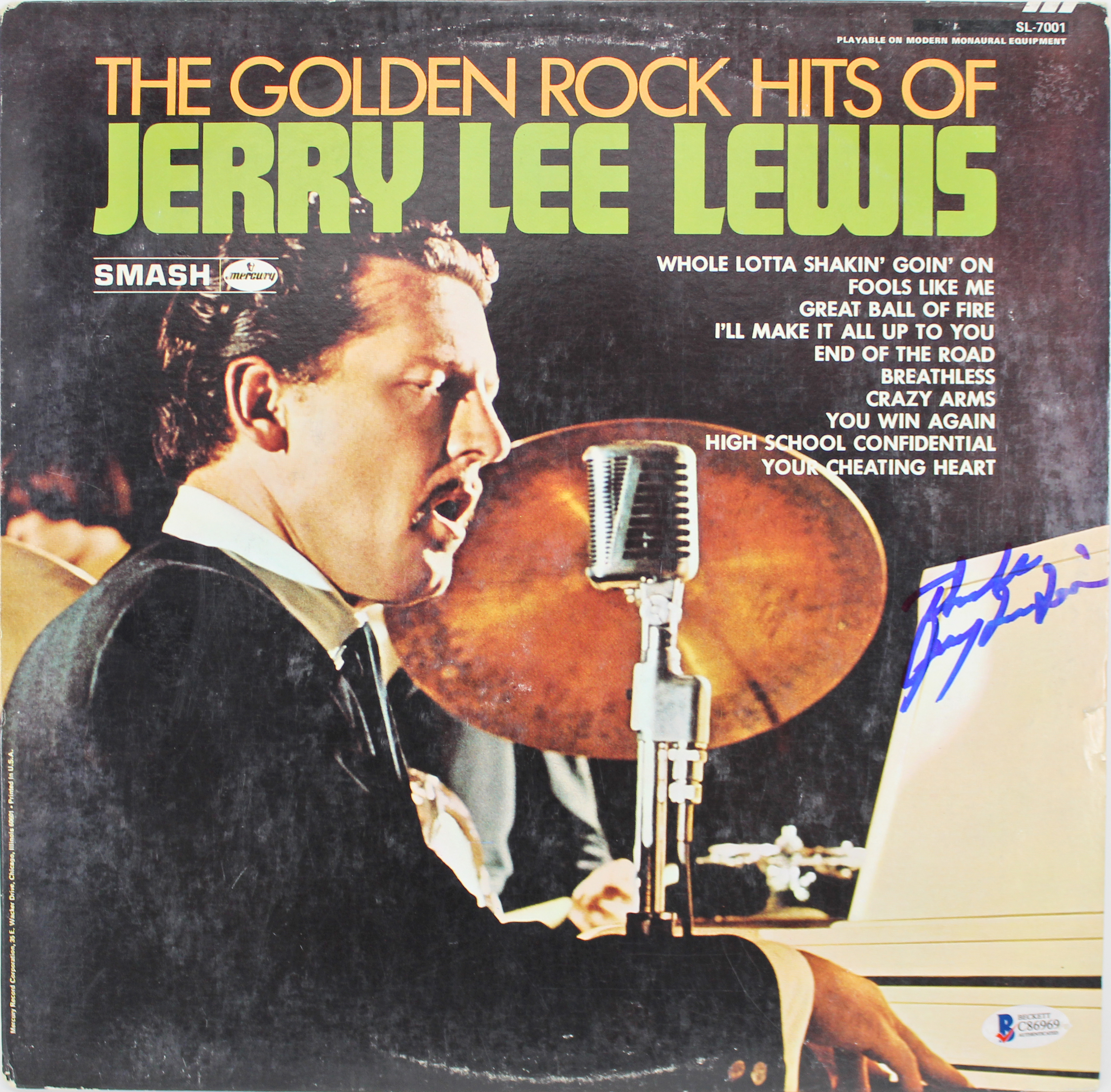 Jerry Lee Lewis Signed The Golden Rock Hits Album Cover W/ Vinyl BAS #C86969