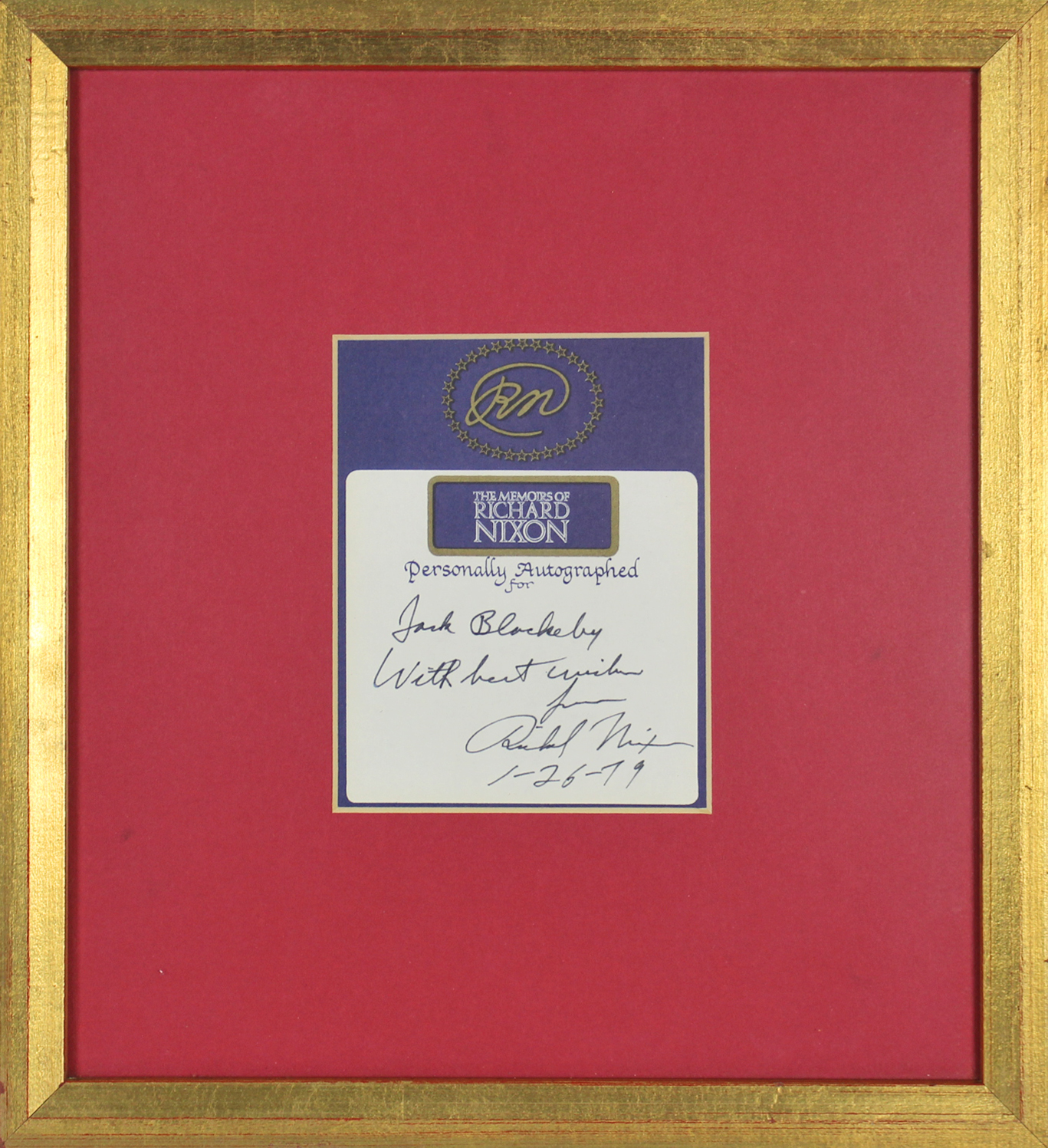 Richard Nixon Authentic Signed & Framed 4x5 Bookplate Cut Signature BAS #A72908