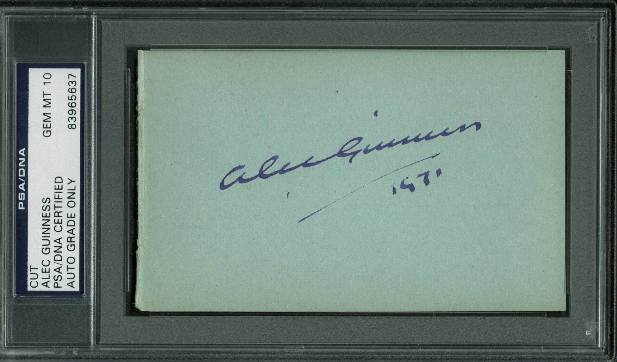 Alec Guinness "1971" Signed 3x5 Cut Signature Auto Graded 10! PSA/DNA Slabbed
