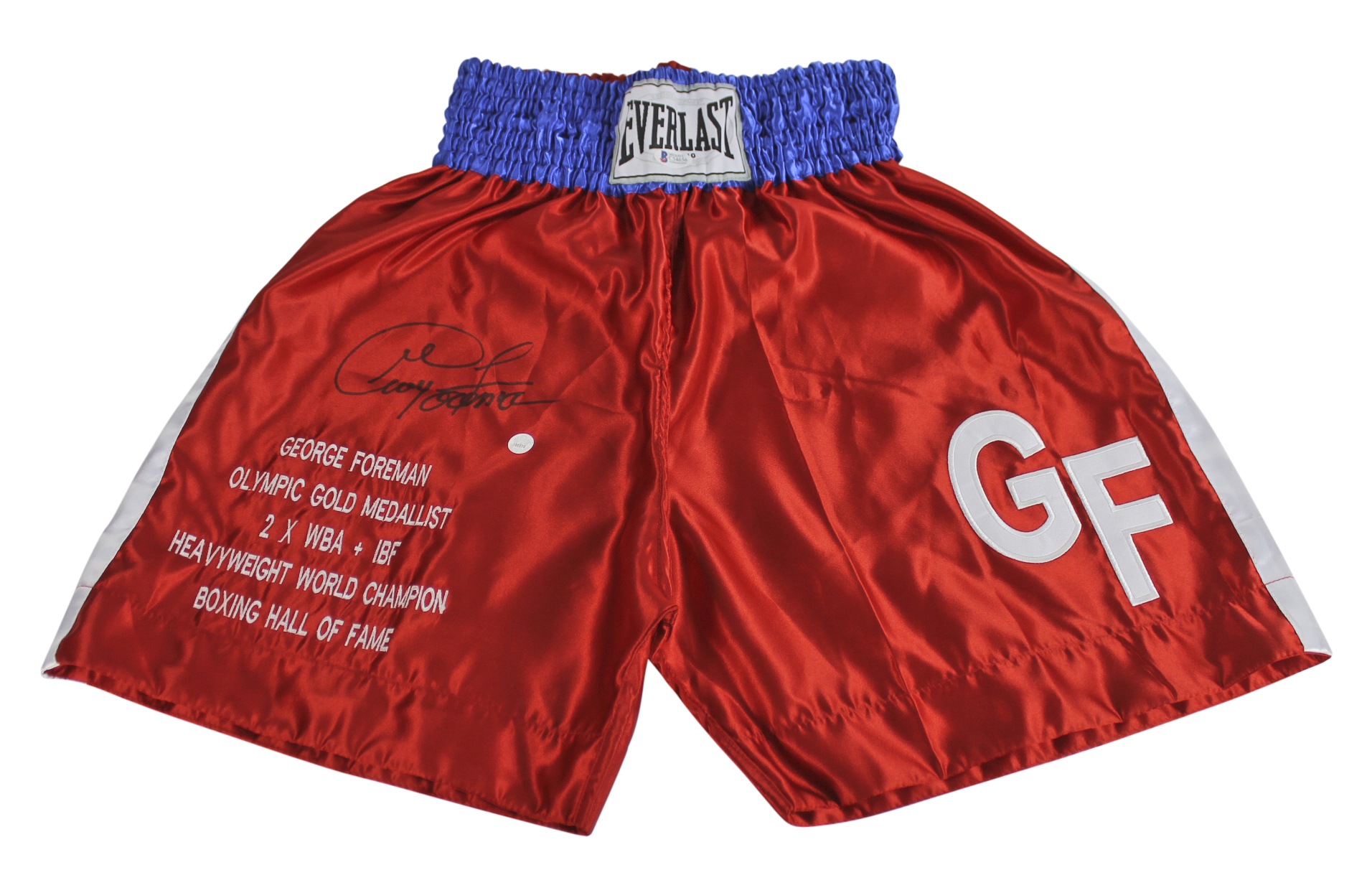 George Foreman Authentic Signed Red Everlast Boxing Trunks BAS #C54656