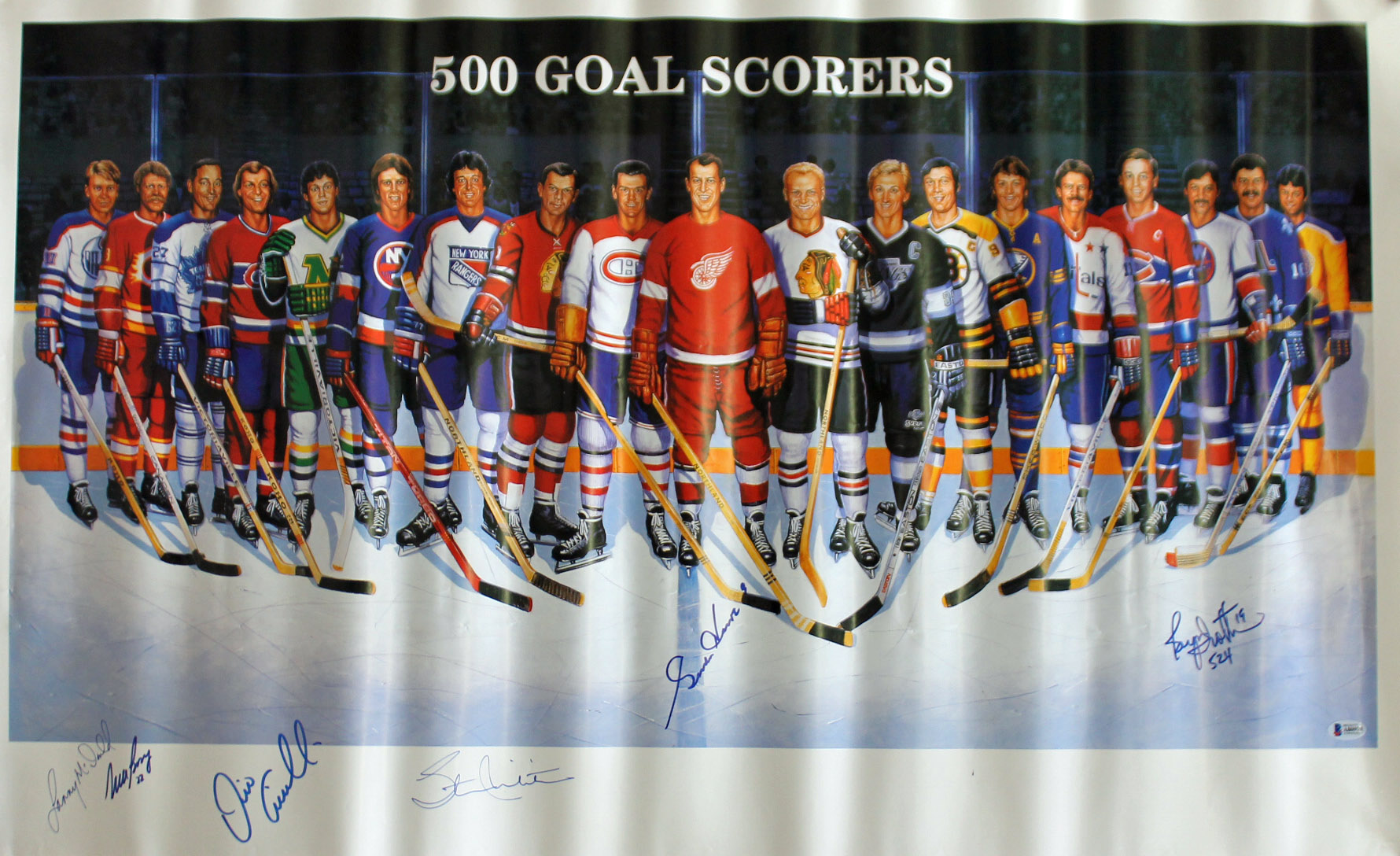 500 Goal Scorers (6) Howe, Bossy, Trottier +3 Signed 22.75x37 Poster BAS #A80979