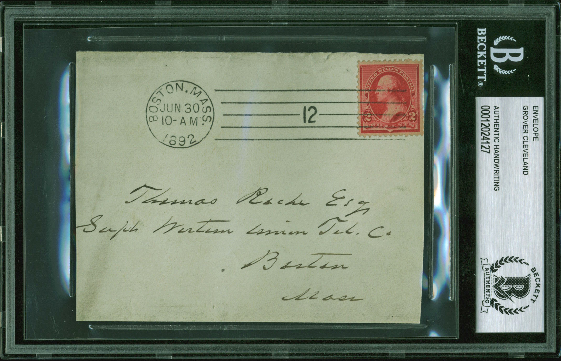 Grover Cleveland Authentic 3.5x4.5 June 1892 Handwritten Envelope BAS Slabbed
