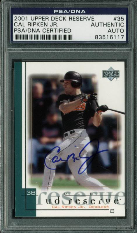 Orioles Cal Ripken Jr. Signed Card 2001 Upper Deck Reserve #35 PSA/DNA Slabbed