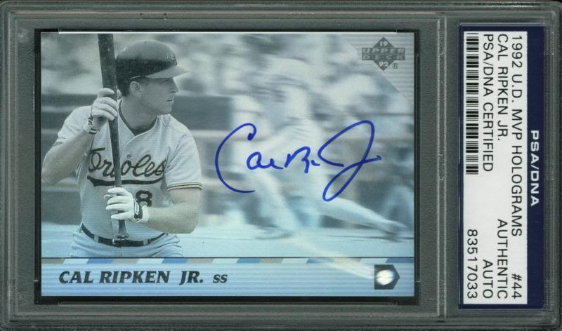 Orioles Cal Ripken Jr. Signed Card 1992 U.D. MVP Holograms #44 PSA/DNA Slabbed