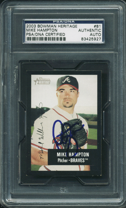 Braves Mike Hampton Authentic Signed Card 2003 Bowman Heritage #81 PSA Slabbed
