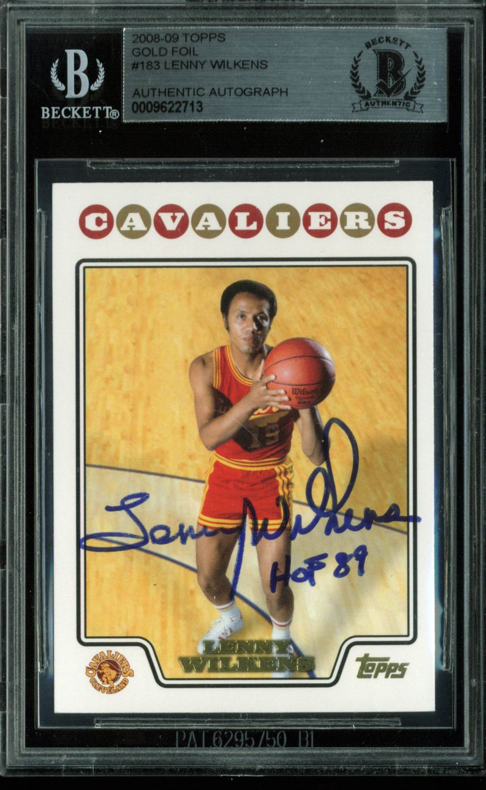 Lenny Wilkens "HOF 89" Authentic Signed Card 2008 Topps Gold #183 BAS Slabbed