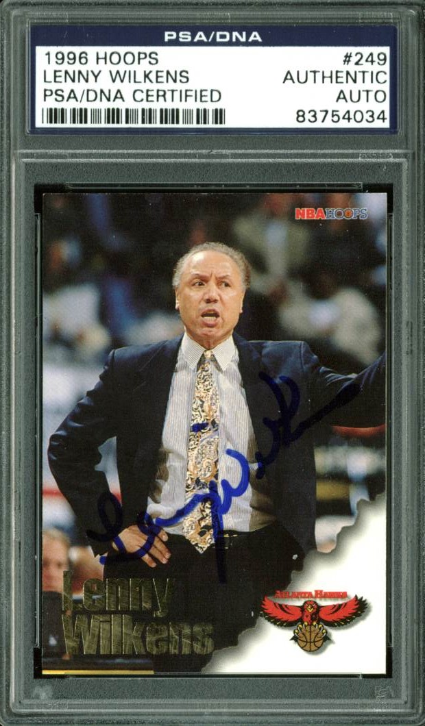 Hawks Lenny Wilkens Authentic Signed Card 1996 Hoops #249 PSA/DNA Slabbed