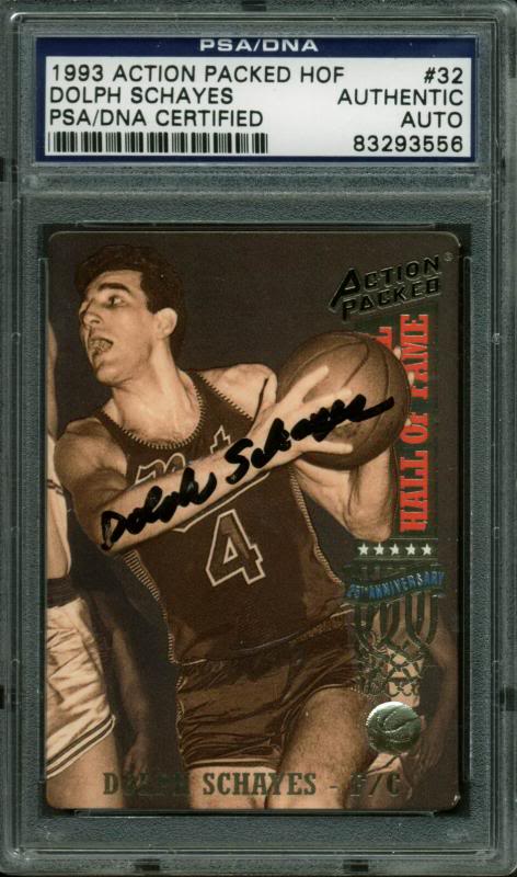 Nationals Dolph Schayes Authentic Signed Card 1993 Action Packed HOF PSA Slabbed