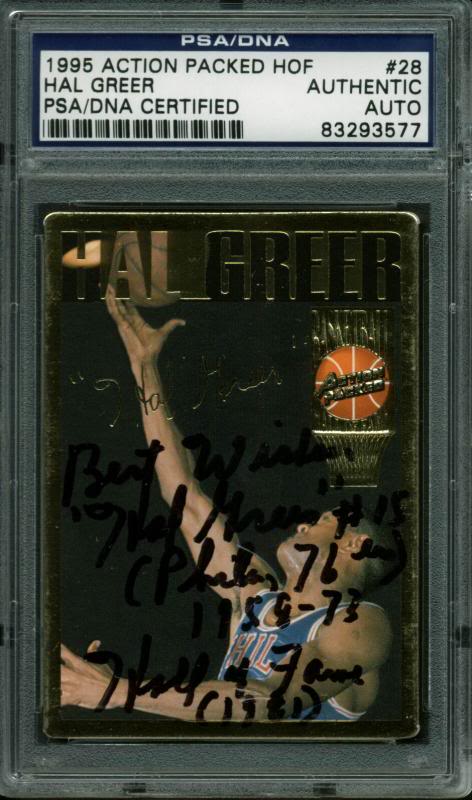 76Ers Hal Greer 'HOF 1981' Signed Card 1995 Action Packed HOF PSA/DNA Slabbed