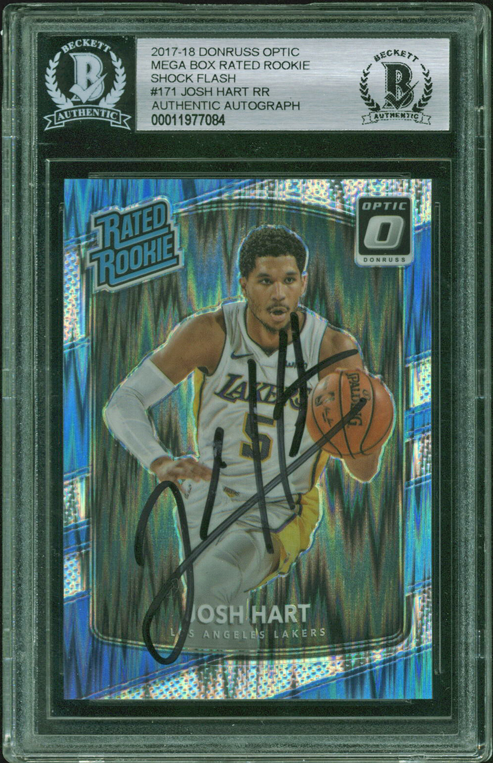 Hornets Josh Hart Signed 2017 Donruss Optic RR Shock Flash #171 Card BAS Slabbed