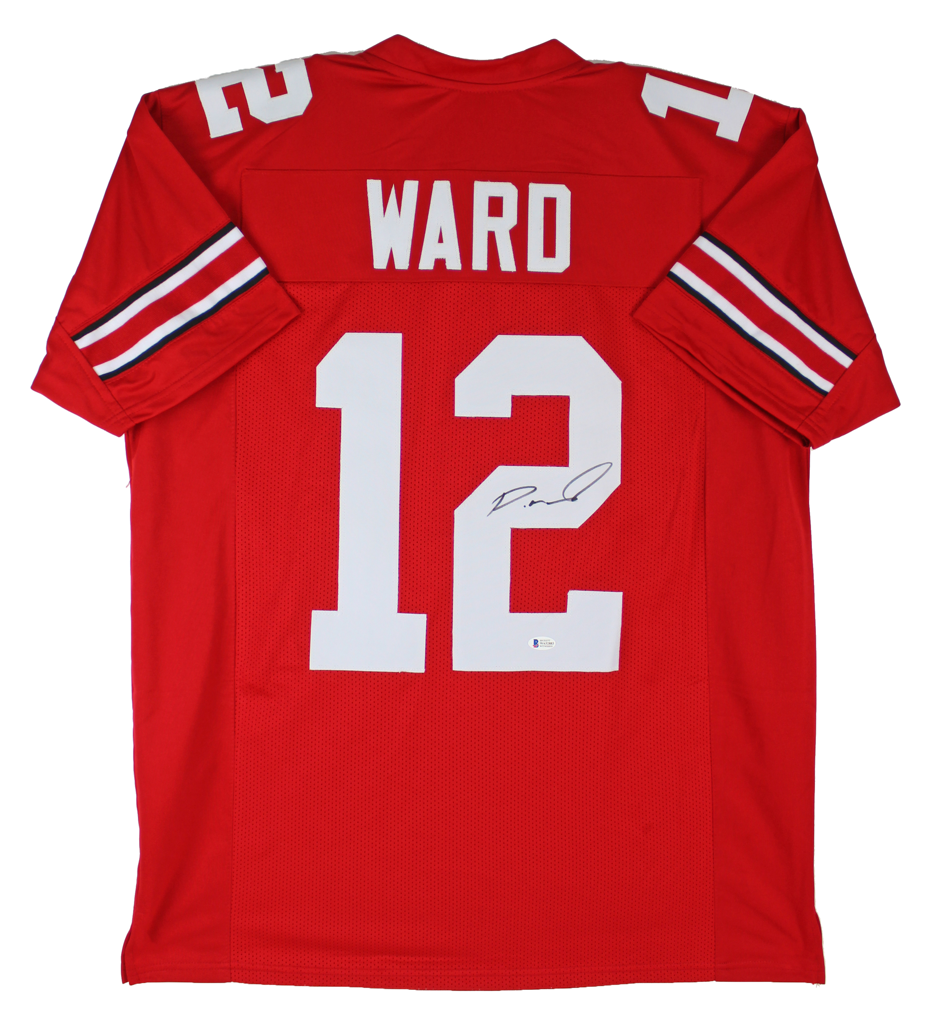 Ohio State Denzel Ward Authentic Signed Red Jersey Autographed BAS Witnessed