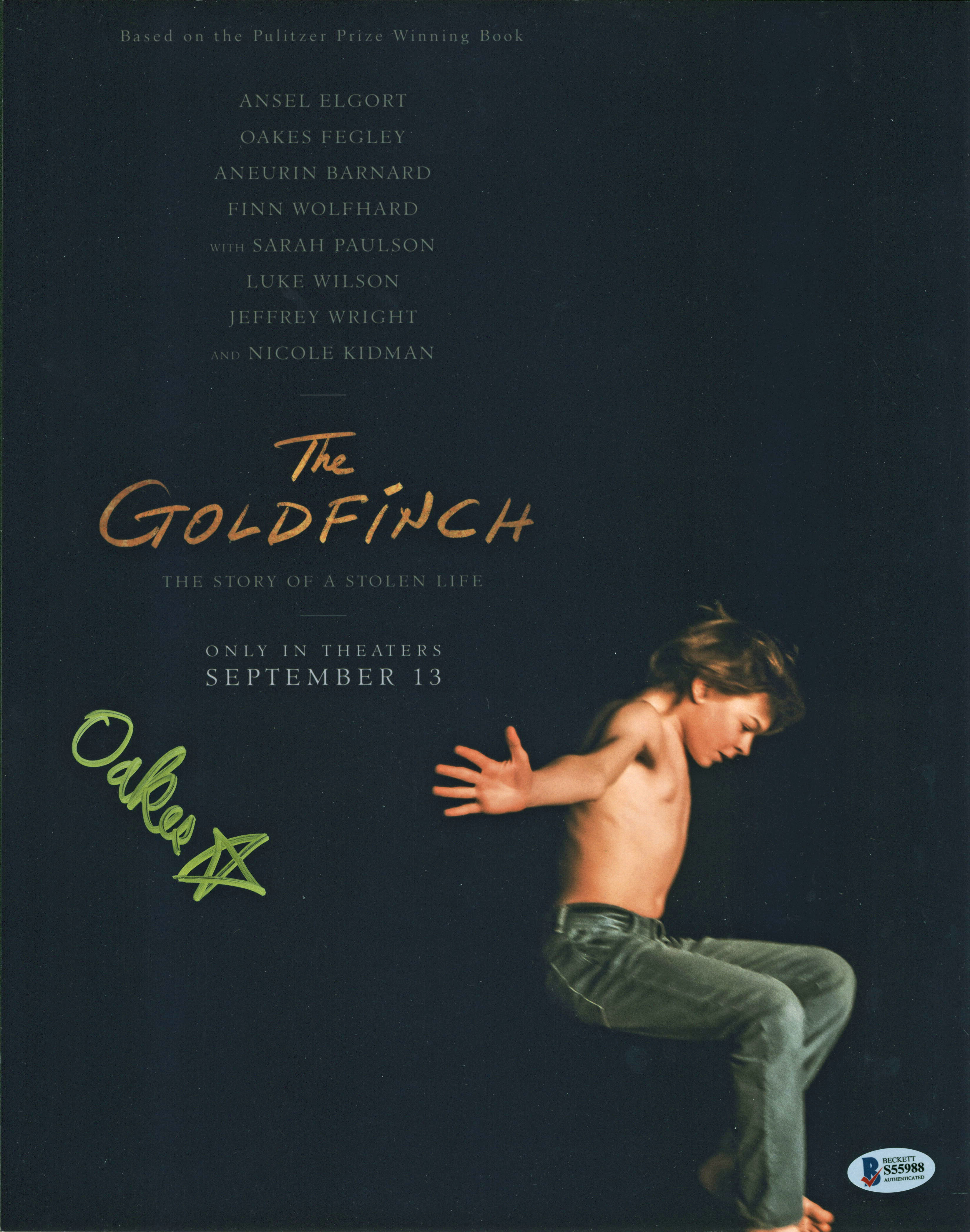 Oakes Fegley The Goldfinch Authentic Signed 11x14 Photo Autographed BAS #S55988