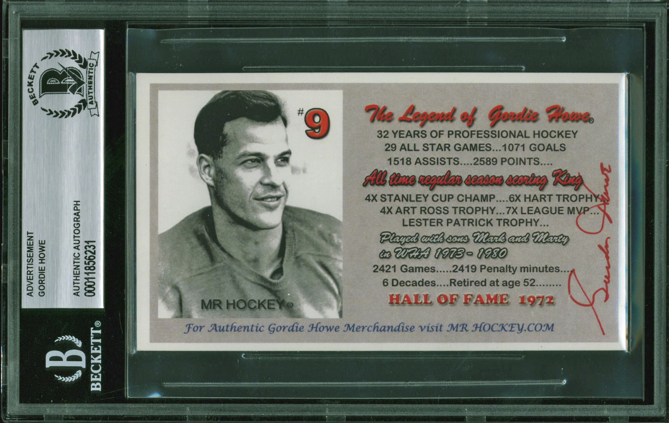 Red Wings Gordie Howe Authentic Signed 3x5 Mr. Hockey Advertisement BAS Slab 2