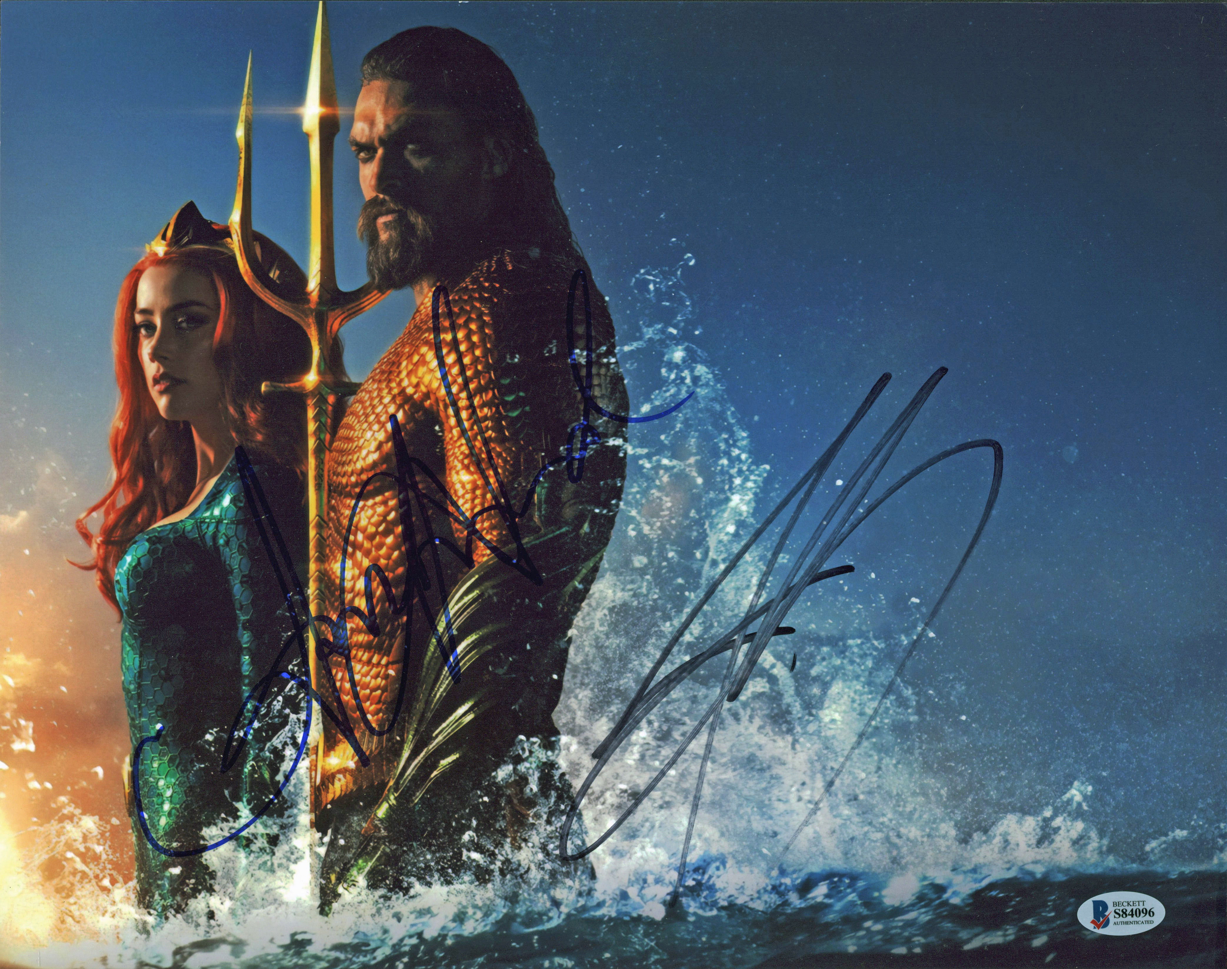 Jason Momoa & Amber Heard Aquaman Authentic Signed 11x14 Photo BAS #S84096
