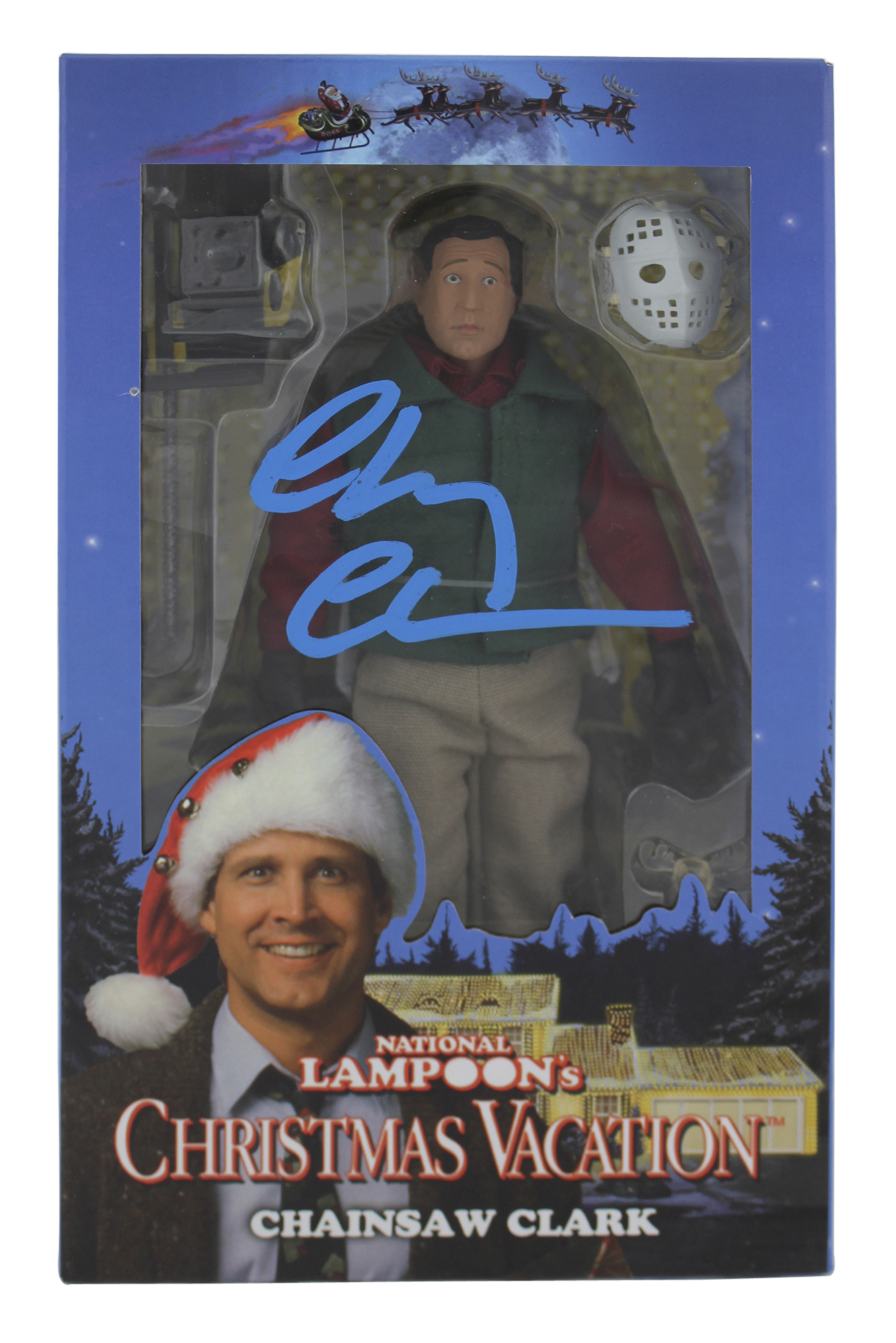 Chevy Chase Christmas Vacation Signed NECA Chainsaw Clark Figure BAS Witnessed