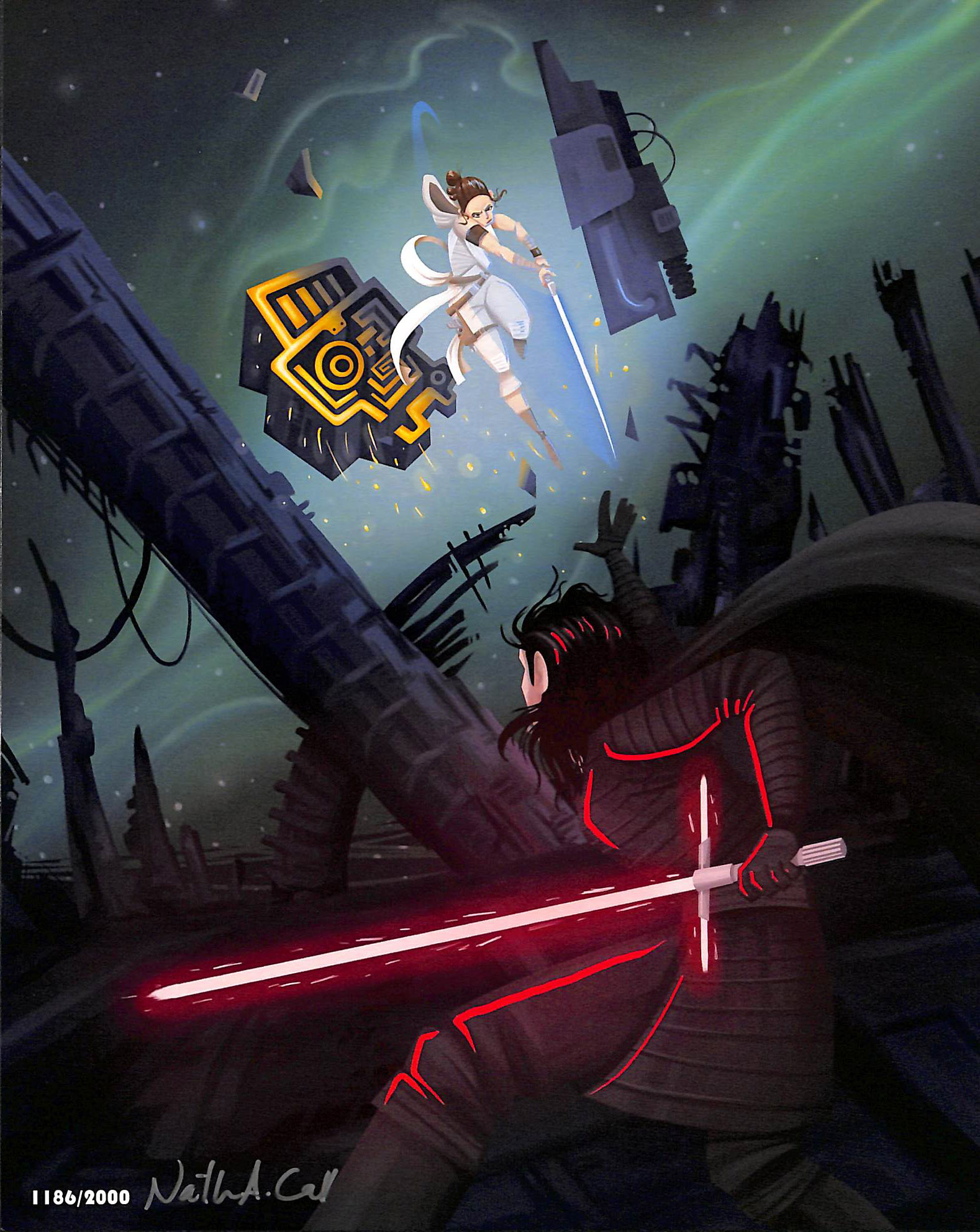 Nate Call Authentic Signed 8x10 Star Wars Rey and Kylo Ren BAM BOX Art Print