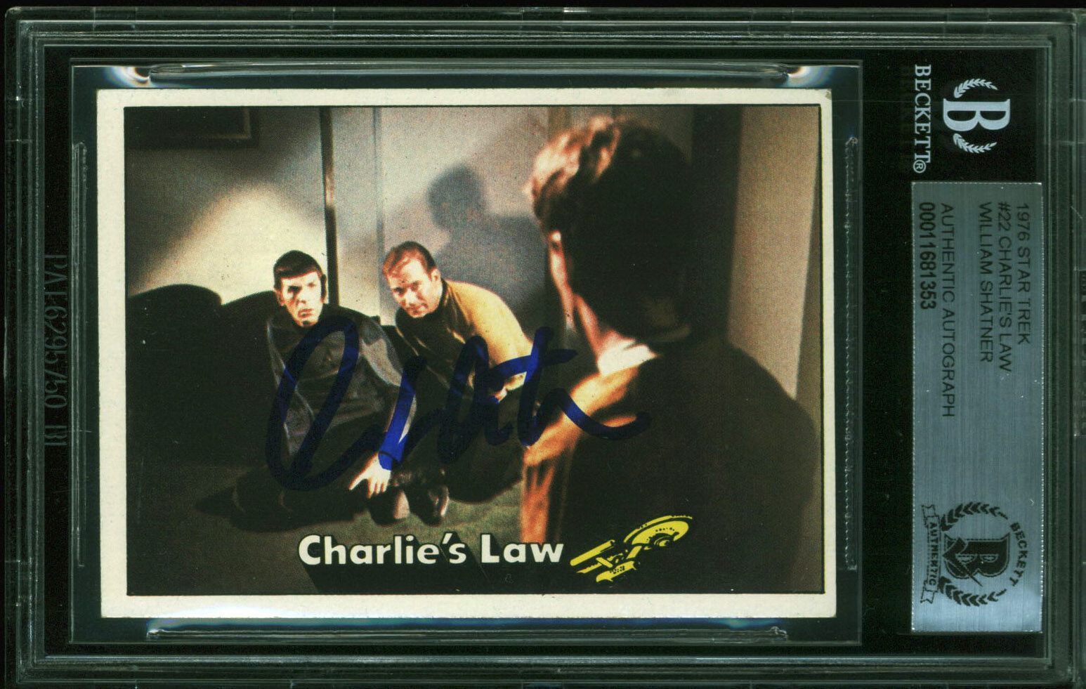 William Shatner Signed 1976 Star Trek #22 Charlie's Law Auto Card BAS Slabbed