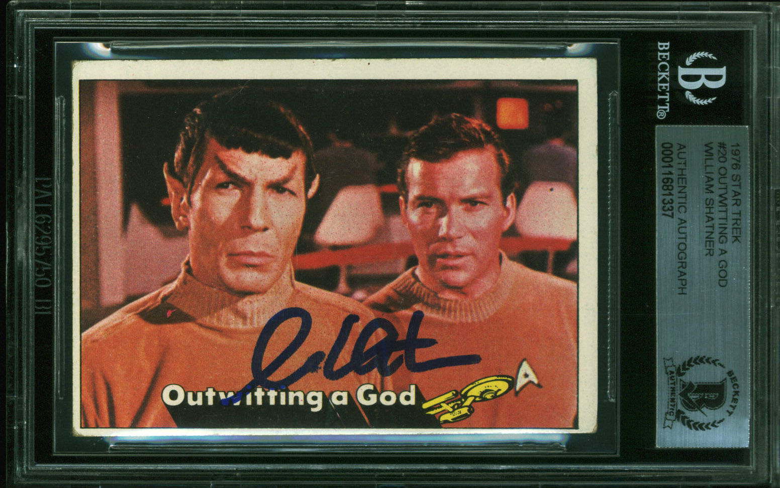 William Shatner Signed 1976 Star Trek #20 Outwitting A God Card BAS Slabbed 1