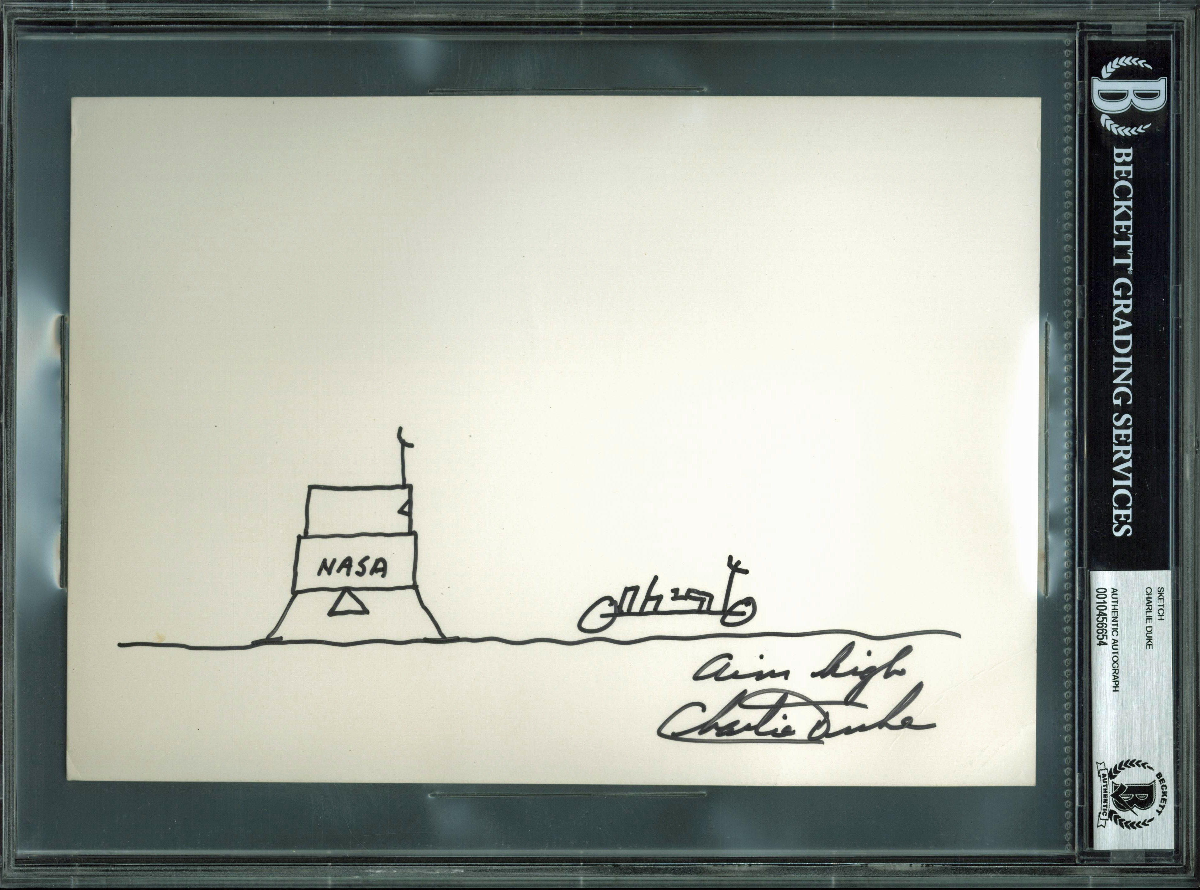 Charlie Duke Apollo 16 Authentic Signed 7.5x10.5 Lunar Sketch BAS Slabbed