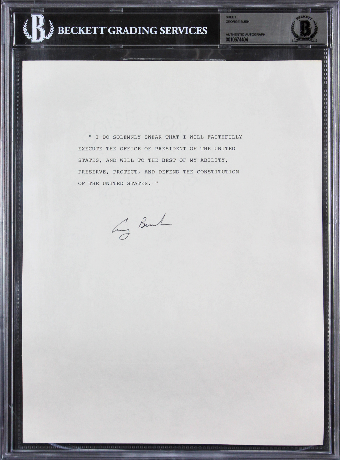 George H.W. Bush Authentic Signed 8.5x11 Oath Of Office Sheet BAS Slabbed