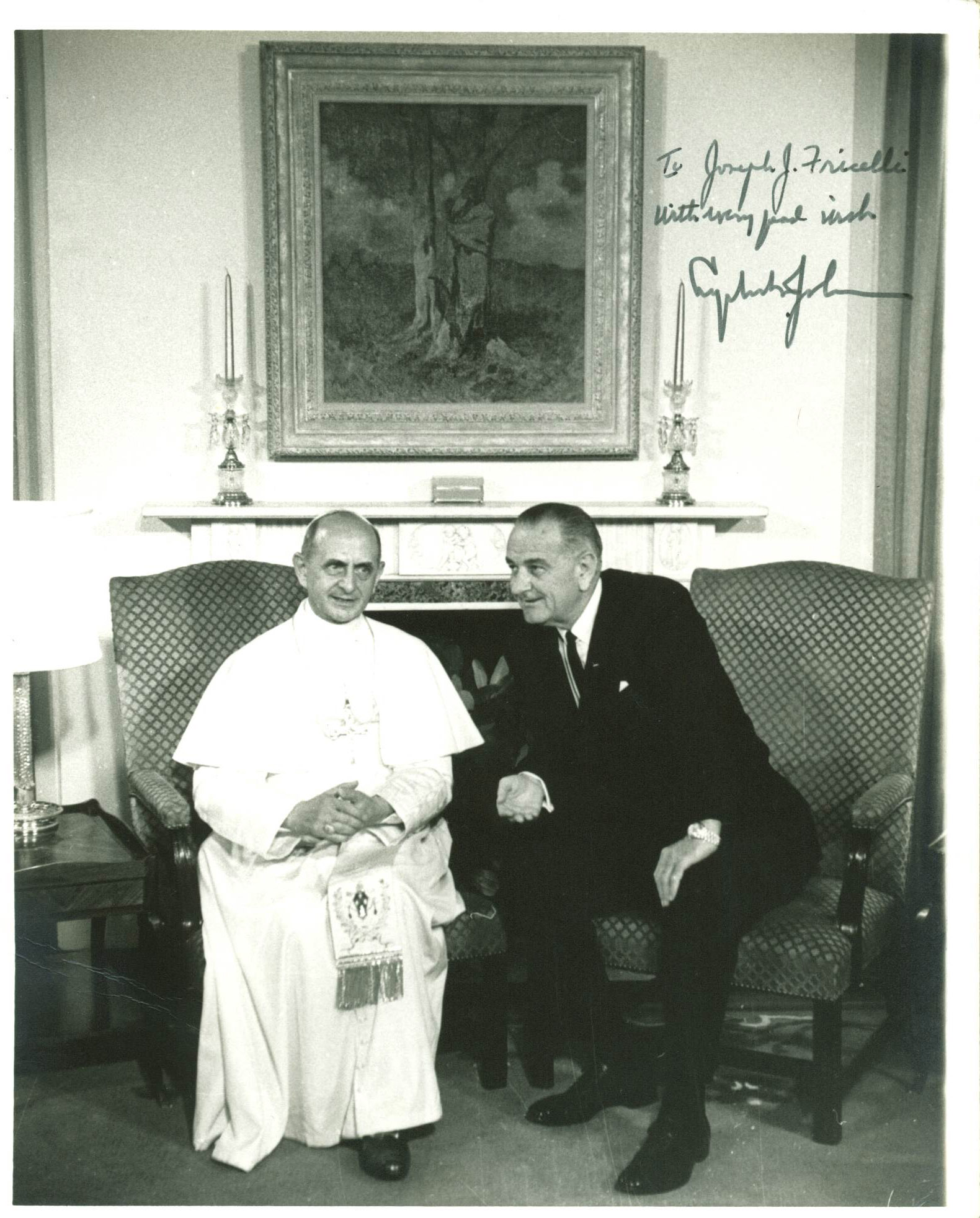 Lyndon B. Johnson Authentic Signed 8X10 Photo Meeting Pope Paul VI BAS #A00326