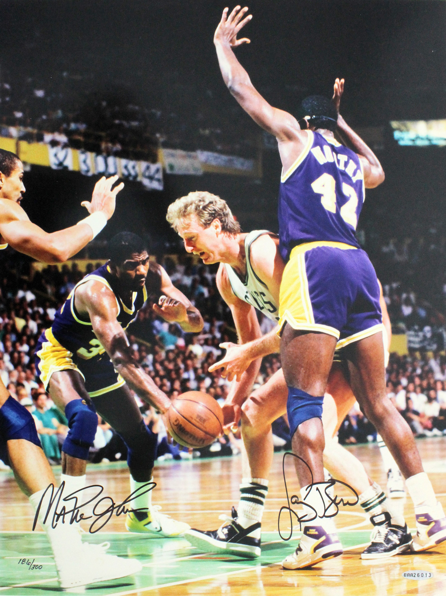 Magic Johnson & Larry Bird Authentic Signed 14.25x19.25 Photo UDA #BAA26013