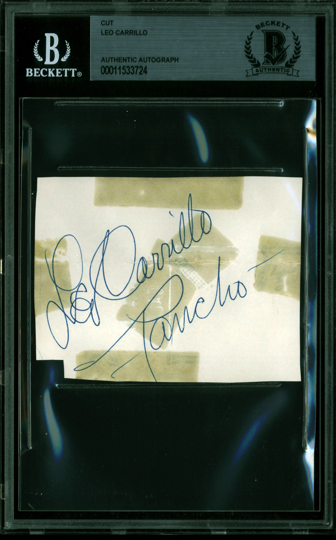 Leo Carrillo The Cisco Kid "Pancho" Signed 2.75x3.5 Cut Signature BAS Slabbed