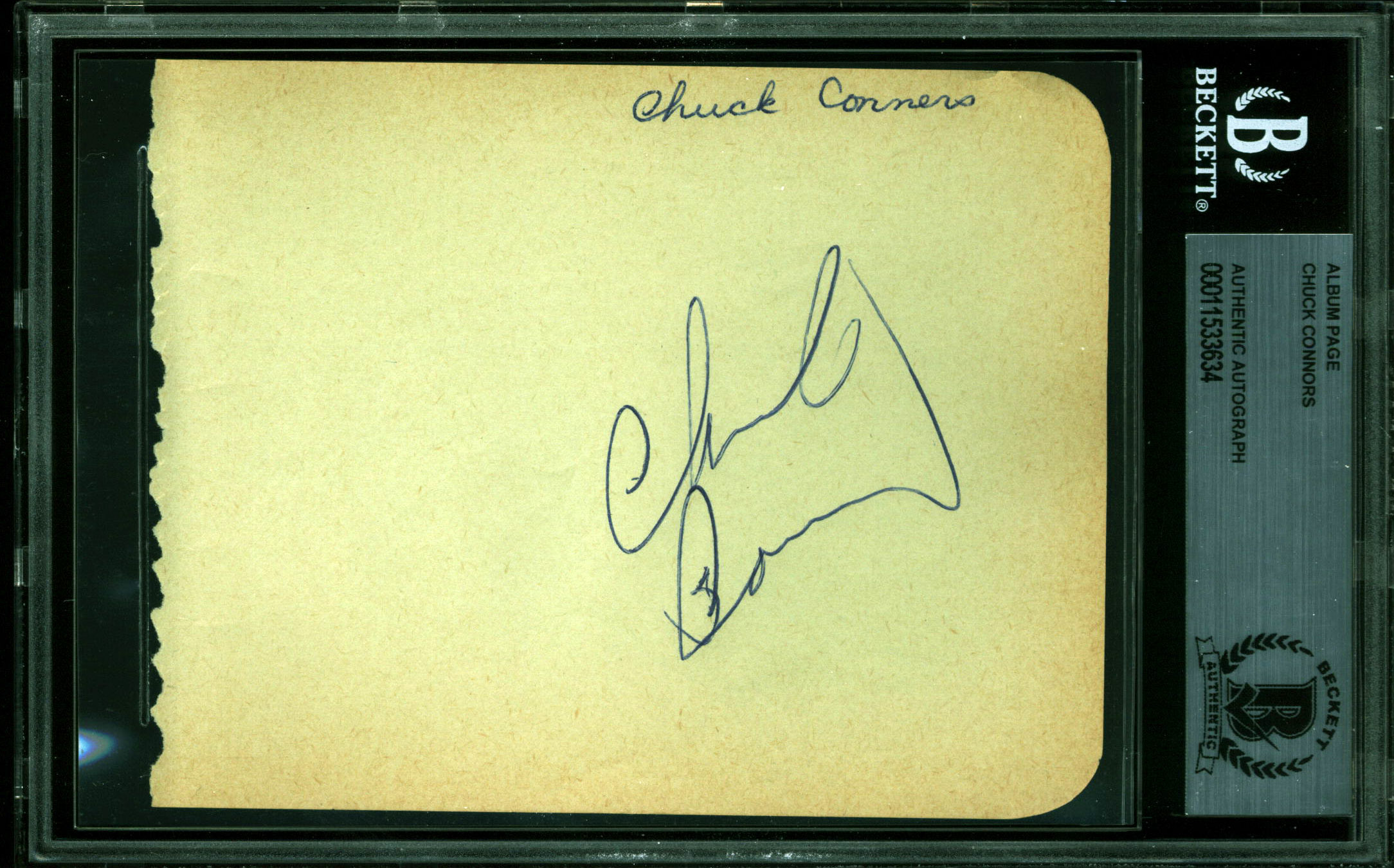 Chuck Connors The Rifleman Authentic Signed 4.5x5.75 Album Page BAS Slabbed