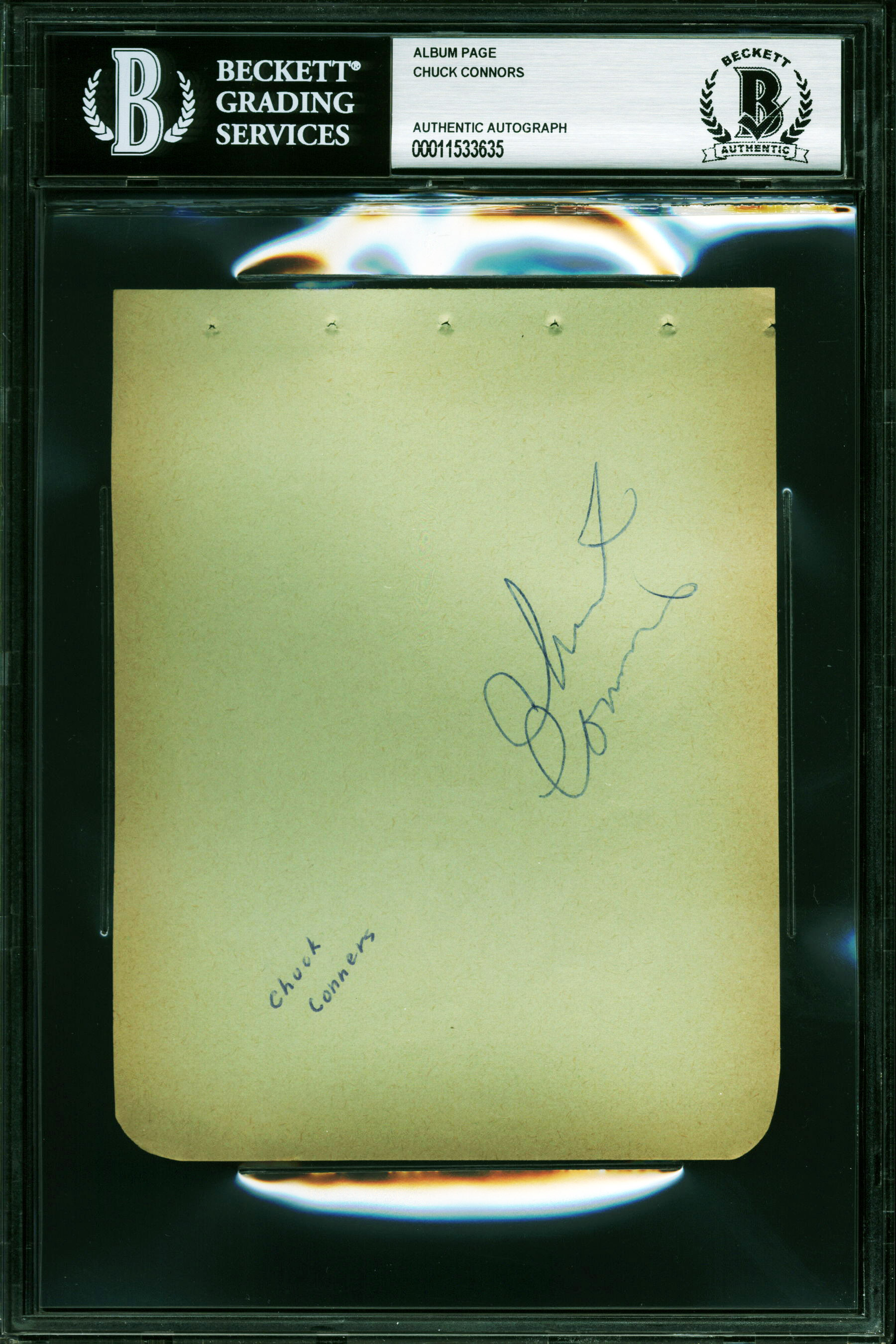 Chuck Connors The Rifleman Authentic Signed 4x5 Album Page BAS Slabbed 1